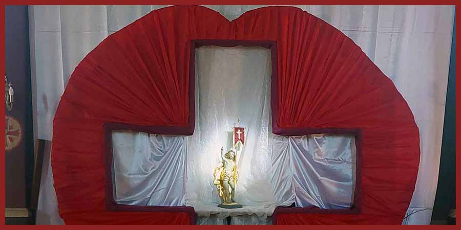 Po sześciu etapach prac konserwatorskich zakończone zostało odnawianie ołtarza głównego w naszej świątyni. Działania prowadzone przez firmę „Rearte”, pod kierownictwem pana Aleksandra Piotrowskiego, przyczyniły się do przywrócenia mu pierwotnej kolorystyki w odcieniu marmuryzowanego brązu ze złoceniami.