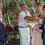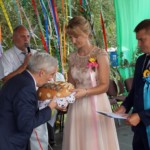 Starostowie przekazali na ręce burmistrza Adama Bodziocha upieczony chleb z tegorocznych zbiorów, a następnie wspólnie poczęstowali nim gości.