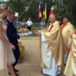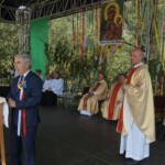 Homilię wygłosił ksiądz proboszcz Krzysztof Balcer z Kazimierzy Małej, nobilitując samych rolników i ich ciężką pracę. Podkreślił hojność Boga w owocach ziemi i pracy rąk ludzkich – rolników. Następnie rozpoczęła się część oficjalna-obrzędowa. Tegoroczne Dożynki zgromadziły: rolników, władze samorządowe, przedstawicieli służb mundurowych, pracowników szkół, instytucji i urzędów oraz gości z Ukrainy i Niemiec. Burmistrz Miasta i Gminy Kazimierza Wielka Adam Bodzioch przywitał wszystkich zebranych po czym zaprosił na scenę pierwsze delegacje wieńcowe. Aby tradycji stało się za dość na ich czele stanęli starostowie dożynek.