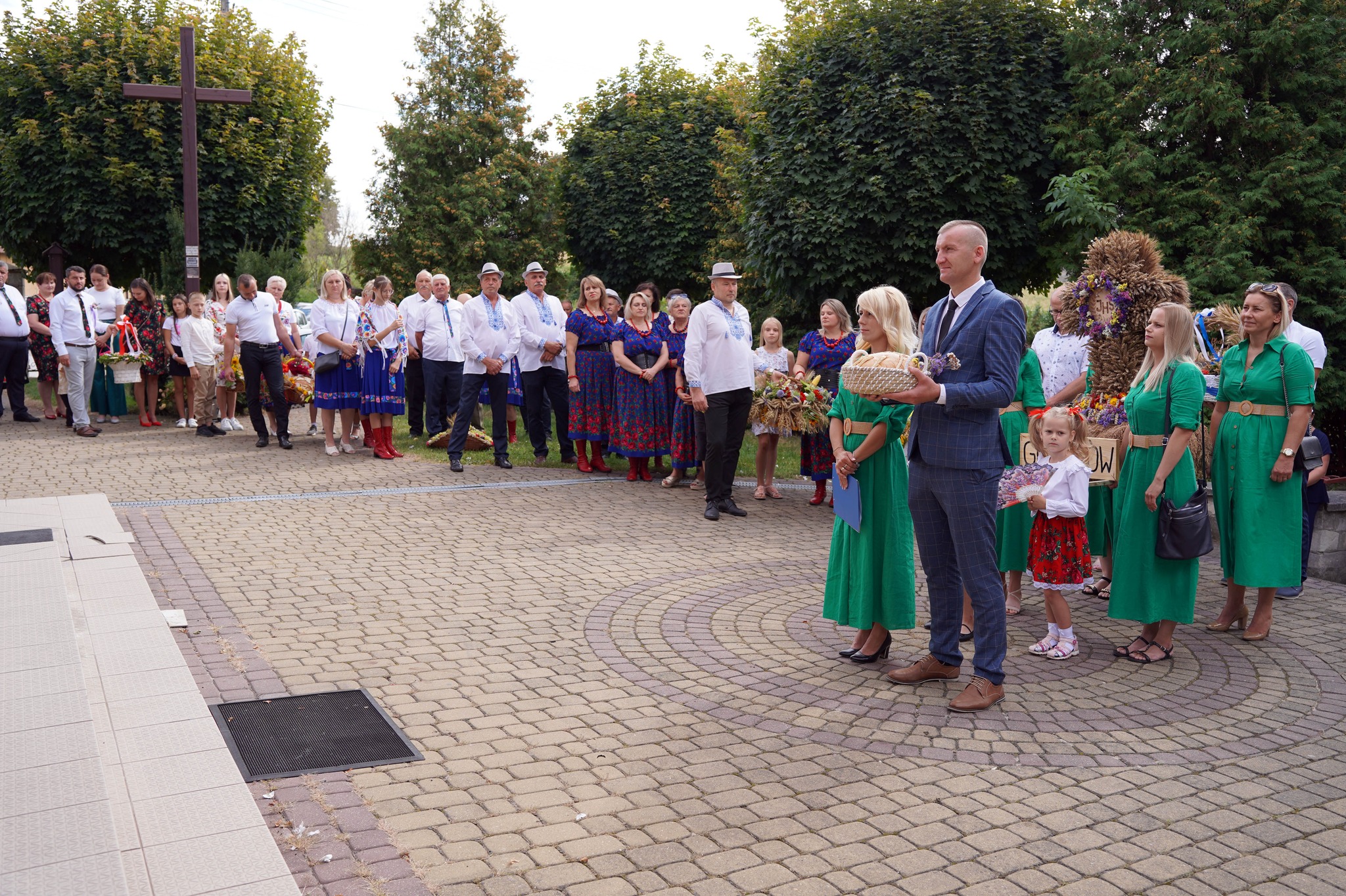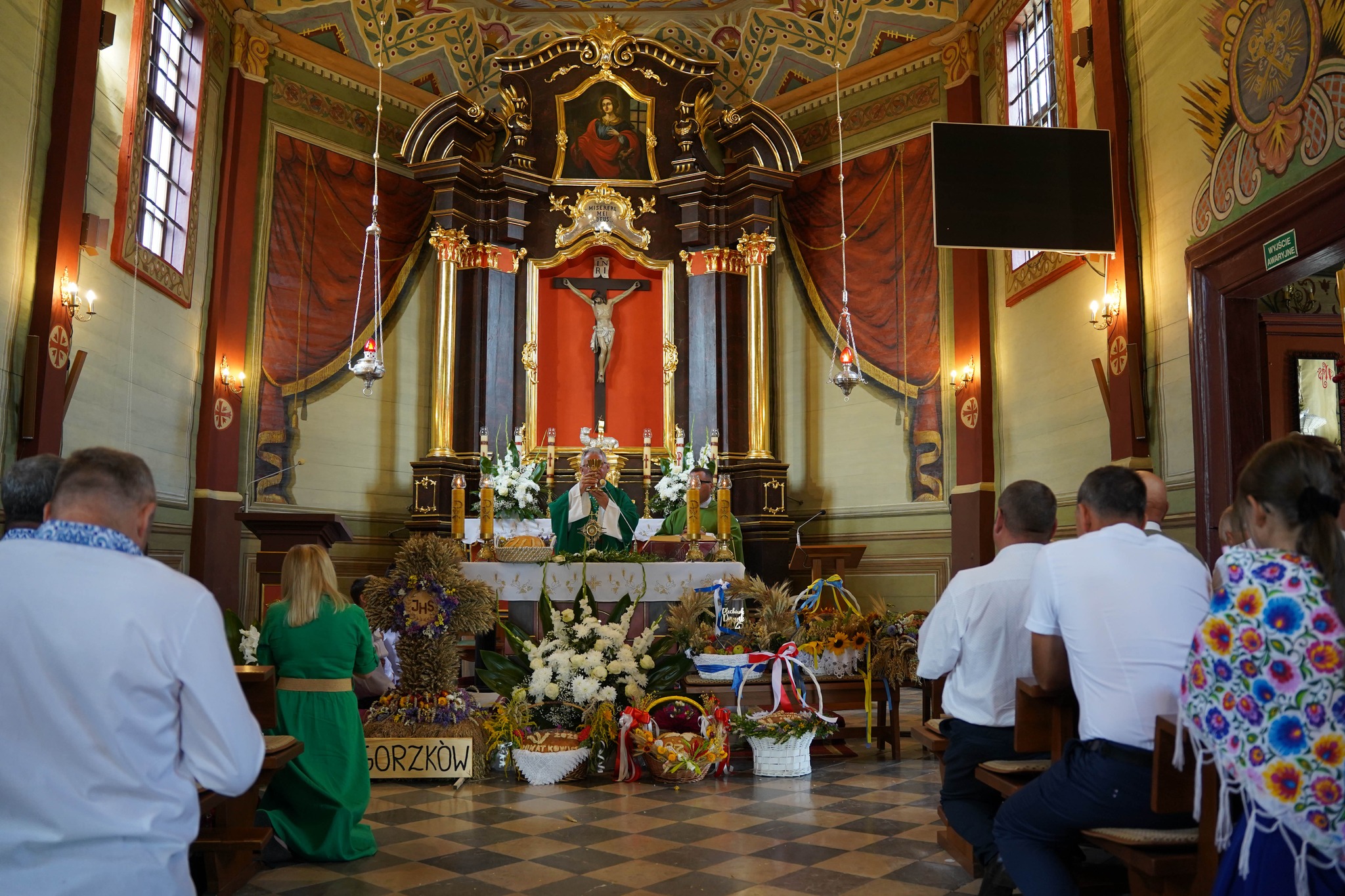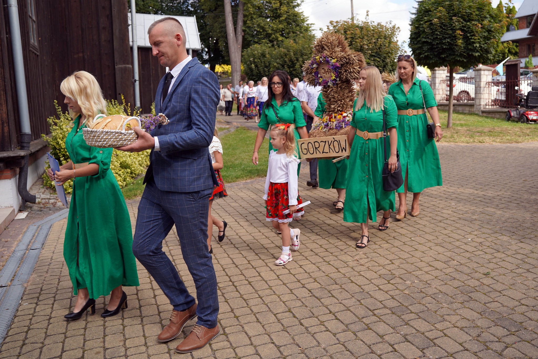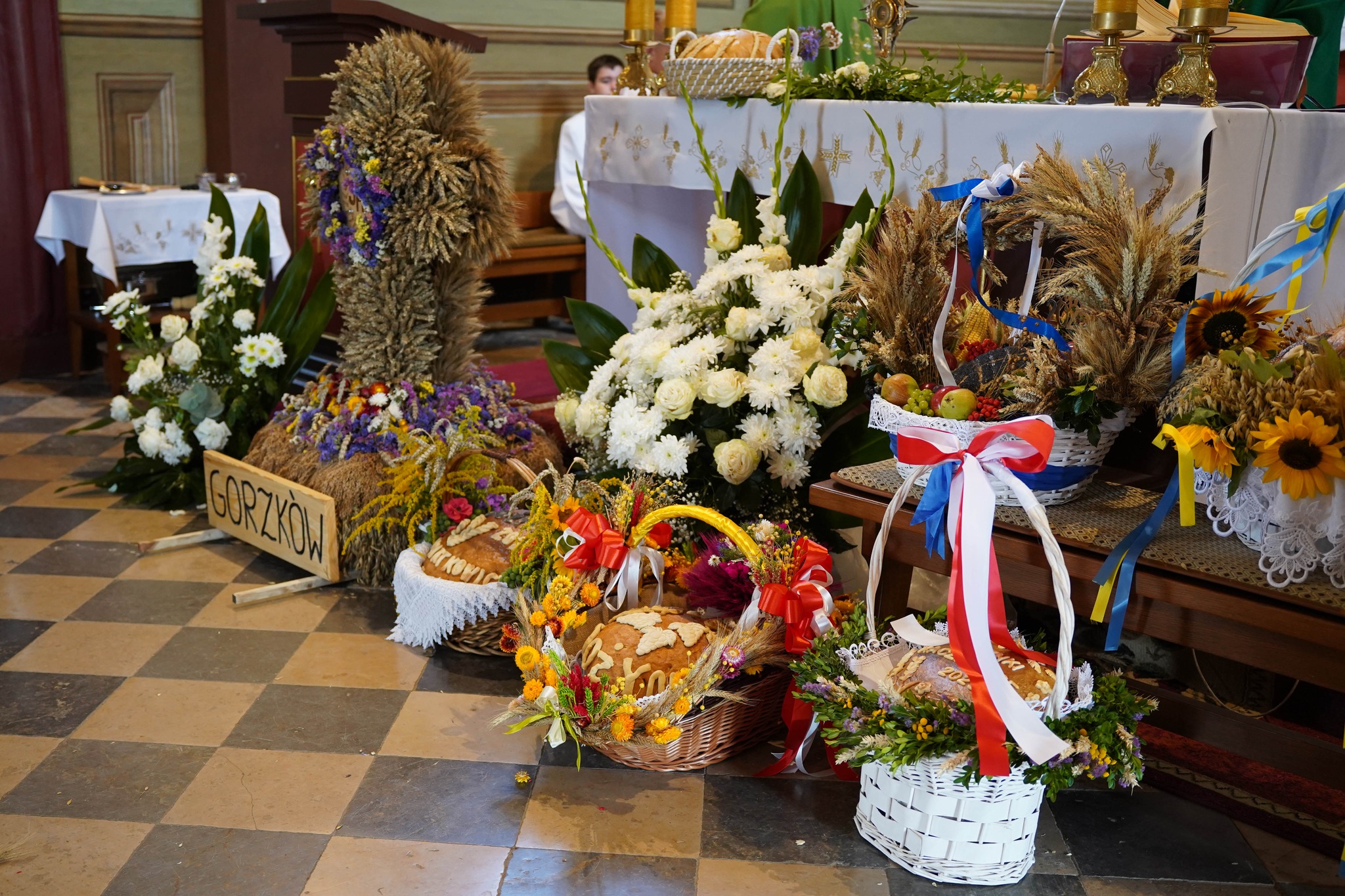 Delegacje z dziewięciu wiosek naszej parafii przyniosły wieniec i kosze dziękczynne. Przedstawiciele: Gorzkowa, Plechówki, Krzyszkowic, Chruszczyny Wielkiej, Stojanowic, Donatkowic, Kaczkowic, Plechowa i Wojsławic wzięli udział w tym święcie plonów. Rozpoczęło je powitanie przed kościołem i procesja do świątyni. Na początku mszy, w imieniu rolników, przemówiła Anna Ciepichał, sołtys Gorzkowa, prosząc wraz z Łukaszem Nowakiem o modlitwę i błogosławieństwo. W odpowiedzi Księdz Proboszcz poświęcił wieniec i kosze z chlebami, warzywami oraz owocami. W homilii przypomniał o randze pracy na roli, jako dziełu współpracy z Bogiem i troski o bliźnich. Przyniesione dary zostały złożone przy ołtarzu podczas procesji ofiarnej, a na koniec Eucharystii, podzielonono przyniesione chleby i poczęstowano wszystkich uczestników. Tegoroczne żniwa i cały czas uprawy były trudne, ale owoce pokazują nam troskę Boga o nas.