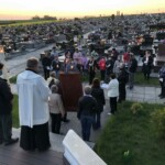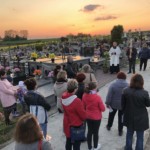 intencjach. Treści medytacji przy rozważaniu poszczególnych spotkań ze Zmartwychwstałym zaczerpnięte został z książki Świętego Papieża „Wstańcie, chodźmy.” Wsłuchując się w jego świadectwo, mogliśmy uczynić się od niego, jak budować dojrzałą relację z Bogiem, sobą i bliźnimi. Pomagały w tym miejsca wokół kościoła i na cmentarzu, przy których zatrzymywaliśmy się na rozważania. Wraz z usłyszanymi treściami, inspirowały do modlitwy za konkretne obszary życia naszego i bliźnich. W dobie przytłaczających informacji, warto nawet w domu indywidualnie odprawiać to nabożeństwo, pomagające zobaczyć głębszy wymiar życia.