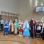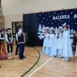 W nieco innym klimacie przebiegało spotkanie w Samorządowej Szkole Podstawowej w Wielgusie. Chociaż i tu było miejsce na życzenia, wspólne kolędowanie i wieczerzę w gronach klasowych oraz nauczycielskim, to jednak w centrum znalazły się jasełka. Przedstawione przez uczniów klas trzecich, przygotowanych przez wychowawców, nauczycieli muzyki oraz Panią Katechetkę, było wspaniałym przeżyciem artystycznym i duchowym. Z wielkim rozmachem i głębią przygotowana inscenizacja, wspaniale oddała atmosferę związaną z Bożym Narodzeniem. Dialogi, śpiewy i tańce pokazywały dramaturgię tych wydarzeń połączoną z ogromną radością spowodowaną narodzinami Zbawiciela. Kontynuacją „Jasełk” był występ uczniów ze starszych klas, którzy zaśpiewali kilka pastorałek. Całość tego spotkania przeżywanego na sali gimnastycznej, pokazała ogrom talentów drzemiących w dzieciach oraz pracę prowadzących ich nauczycieli. Ukazała też znaczenie wychowania szkolnego otwartego na świat wiary, w którym wychowywane są dzieci.