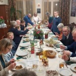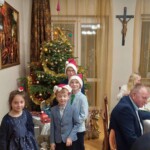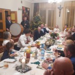 Na tradycyjną wieczerzę wigilijną przyjechali do Księdza Proboszcza członkowie jego rodziny. Od wielu lat spotykają się w takiej ponad dwudziestoosobowe, wielopokoleniowej wspólnocie rodzinnej. Tradycyjnie na rozpoczęcie była wspólna modlitwa i dzielenie opłatkiem połączone z życzeniami, a następnie posiłek wigilijny przeplatany śpiewem ponad dwudziestu kolęd. Oczywiście nie mogło zabraknąć prezentów rozdawanych znalezionych pod choinką. Miłą niespodzianką były odwiedziny kolędników – Filipa i Marcela – pięknie wpisujących się w atmosferę tego wigilijnego czuwania.