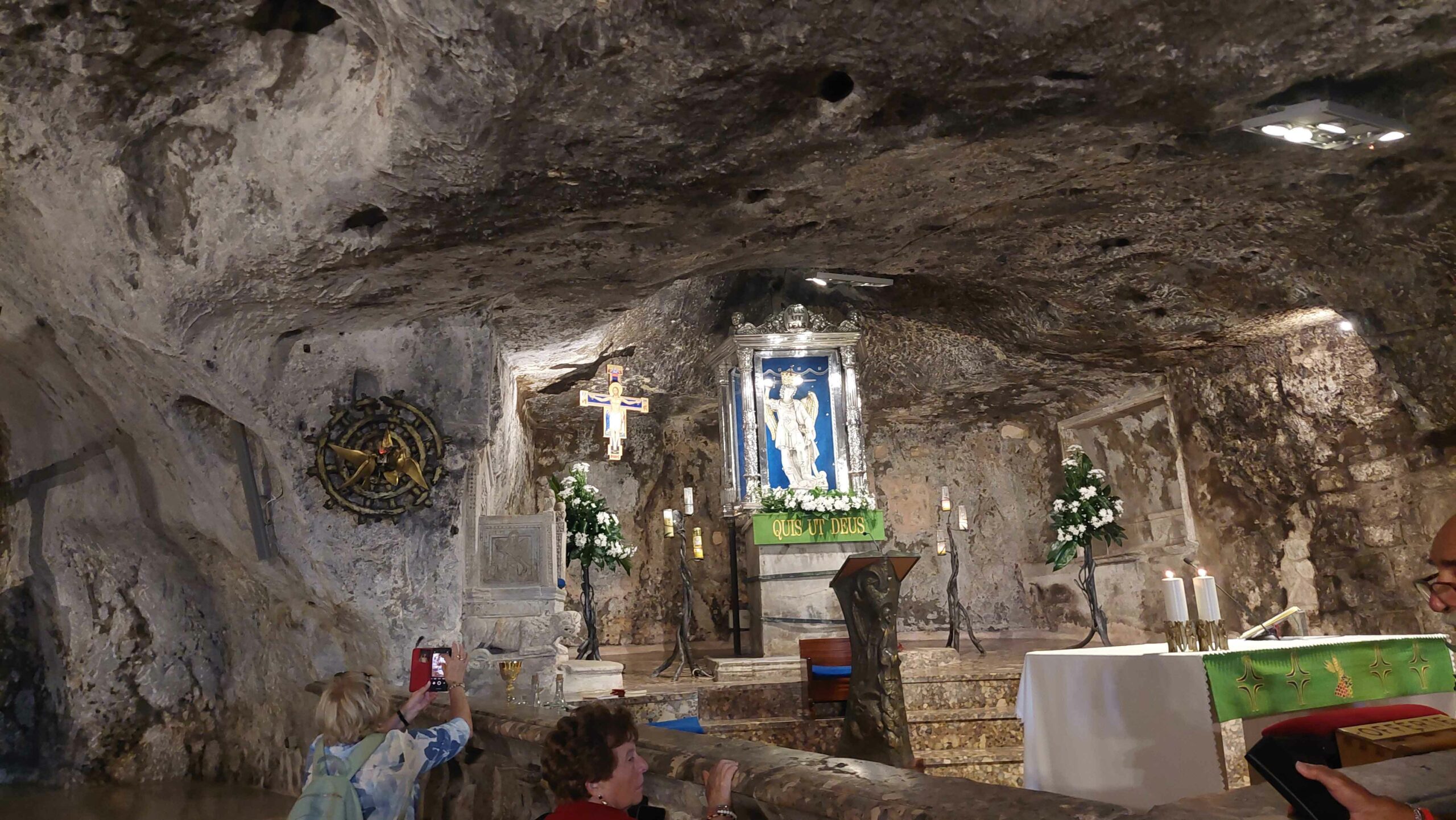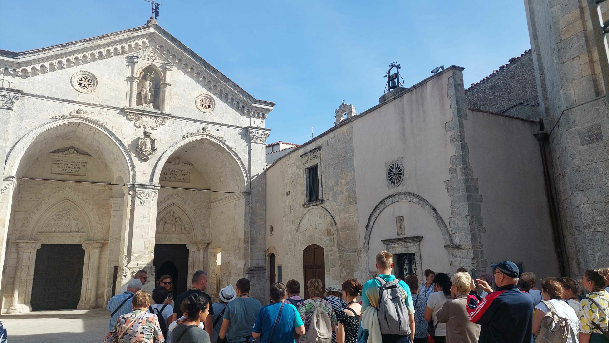Dwadzieścia kilometrów dalej zeszliśmy do skalnej groty, czyli sanktuarium związanym z objawieniami w V wieku św. Michała Archanioła na Monte San Angelo. To miejsce przypomina o Bogu mocniejszym niż wszelkie zło. Przyzywanie opieki Bożych Posłańców stanowi istotny wymiar walki duchowej, której jesteśmy uczestnikami. W sprawowanej tu Eucharystii prosiliśmy o pokorę w przyjmowaniu Bożej pomocy. Święty Michał Archanioł samym imieniem inspiruje do życia prawdą „Któż jak Bóg?”, dającą w każdej chwili nadzieję.
