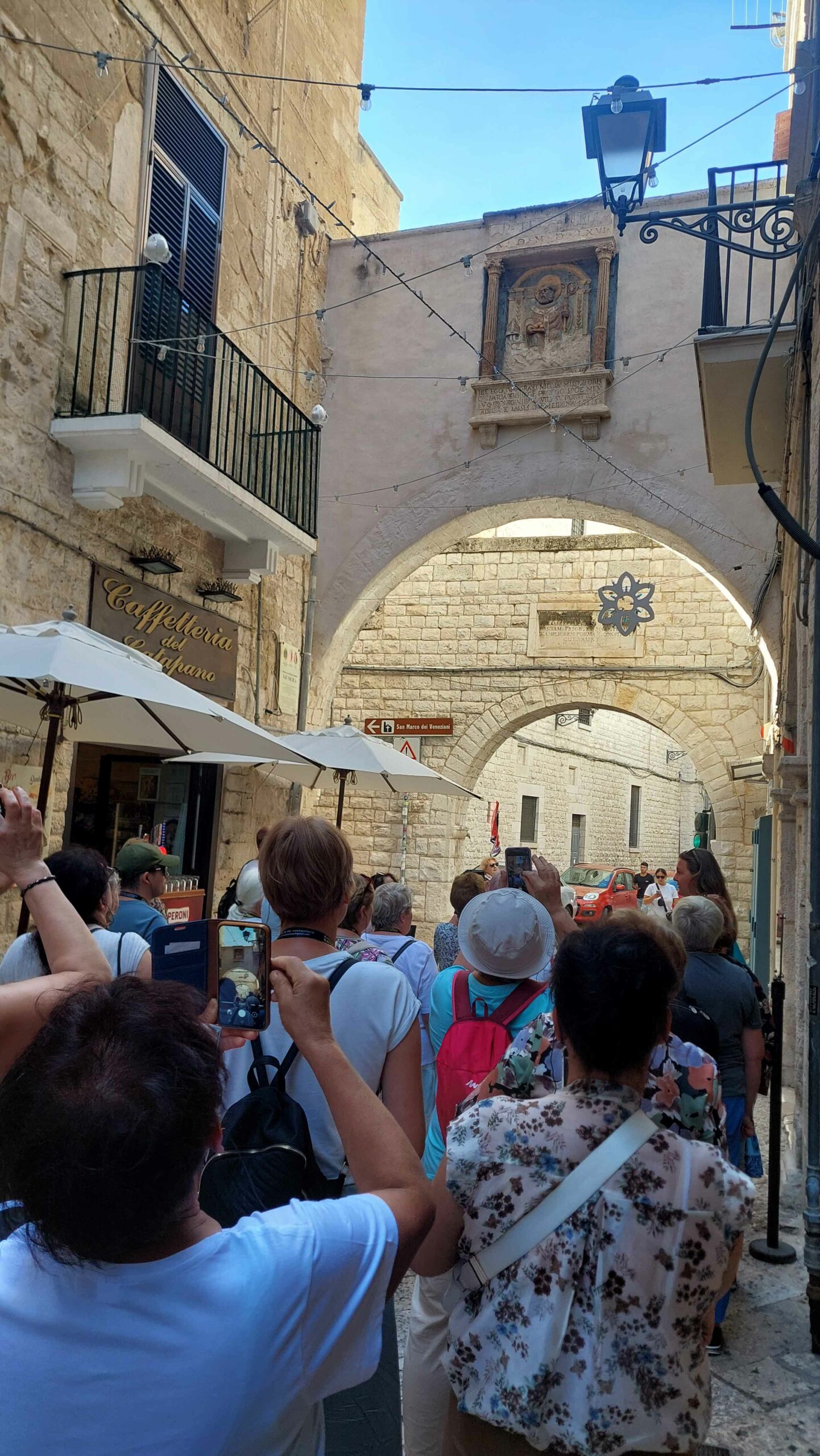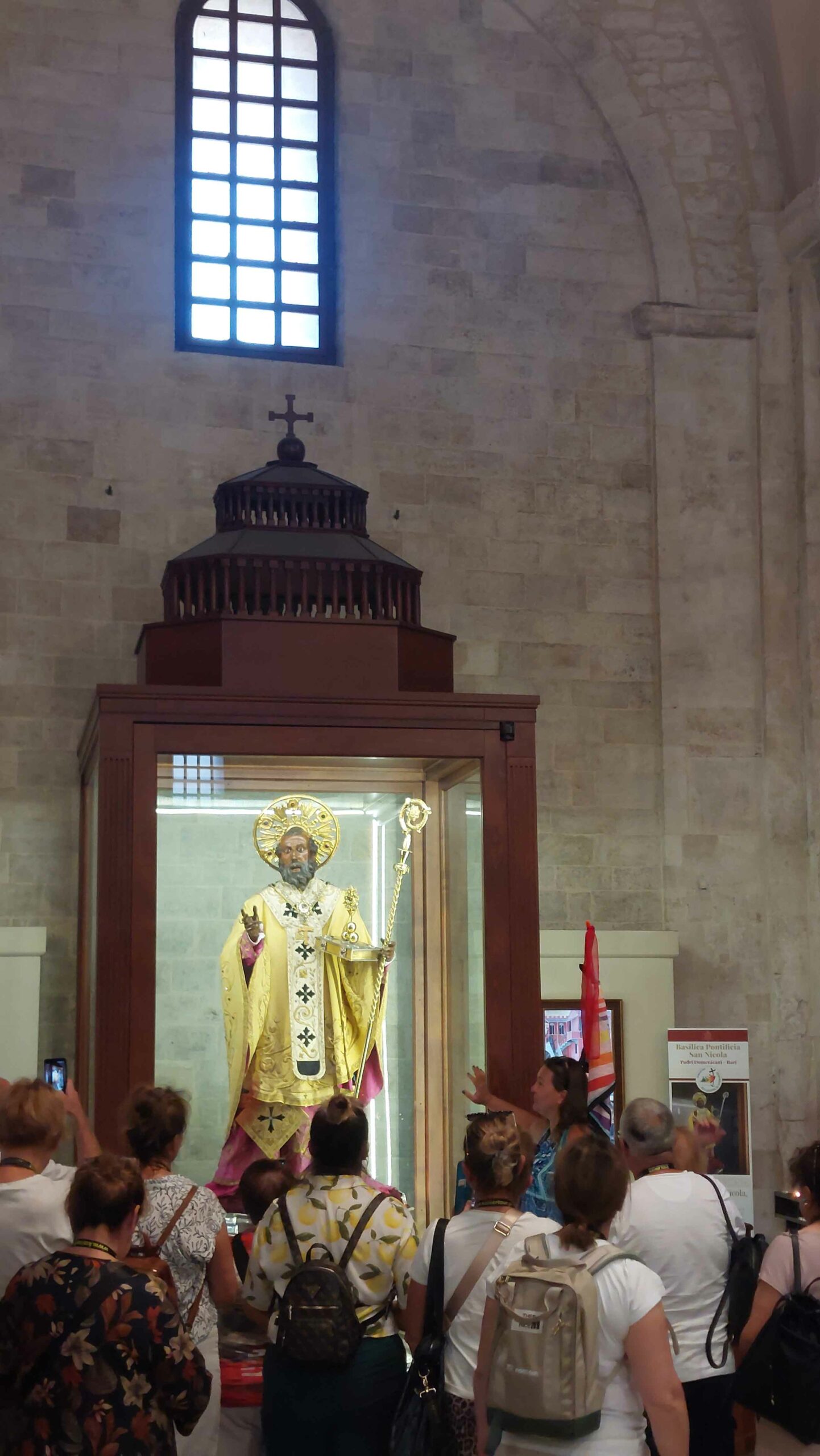 Ostatnim odwiedzanym miejscem było Bari z sanktuarium św. Mikołaja. Pięknie zachowana średniowieczna starówka przypomina o złożonych dziejach tego regionu. Związane są one również z Polską przez osobę królowej Bony, która tu się wychowała i zakończyła swe życie. Jej grób znajduje się w bazylice św. Mikołaja. To właśnie przy grobie tego, jakże drogiego każdemu Świętego, zatrzymaliśmy na rozważanie i modlitwę. On jest pytaniem o wdzięczność wobec kochających nas osób oraz o naszą troskę o innych. Wędrówka uliczkami i promenadą pozwoliła nam odczuć klimat tego miasta i zakosztować lokalnych smakołyków.