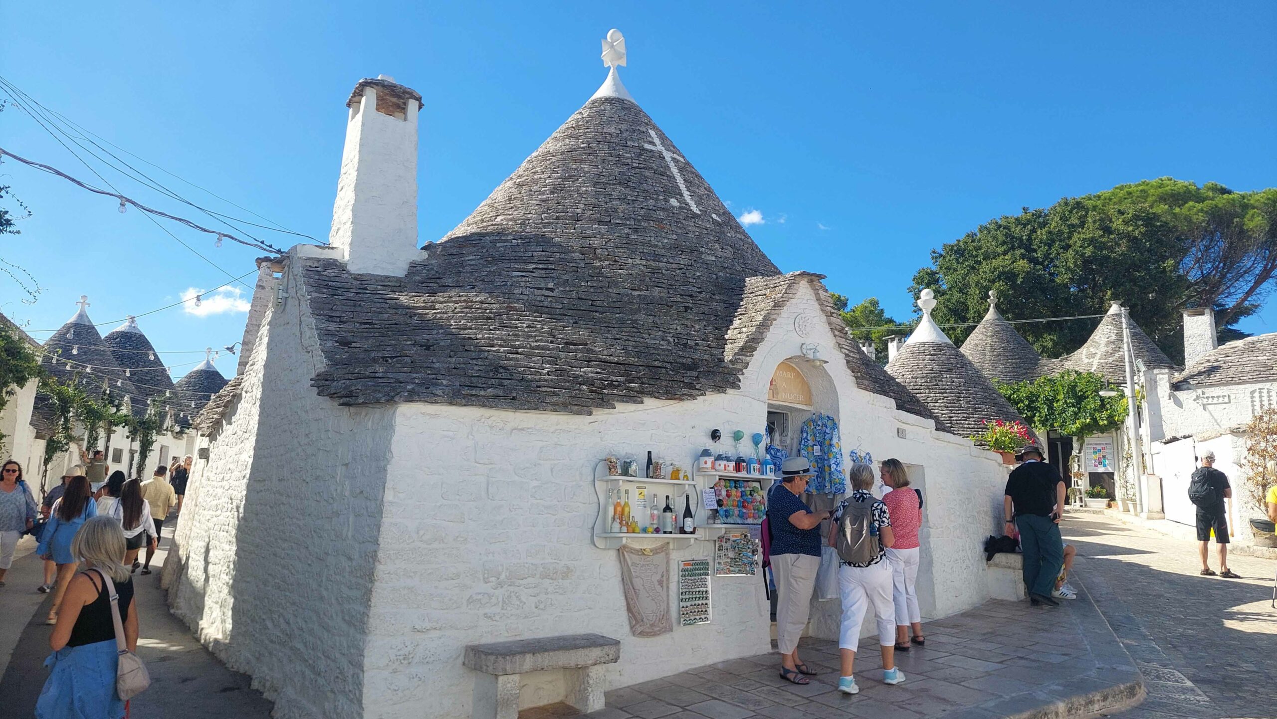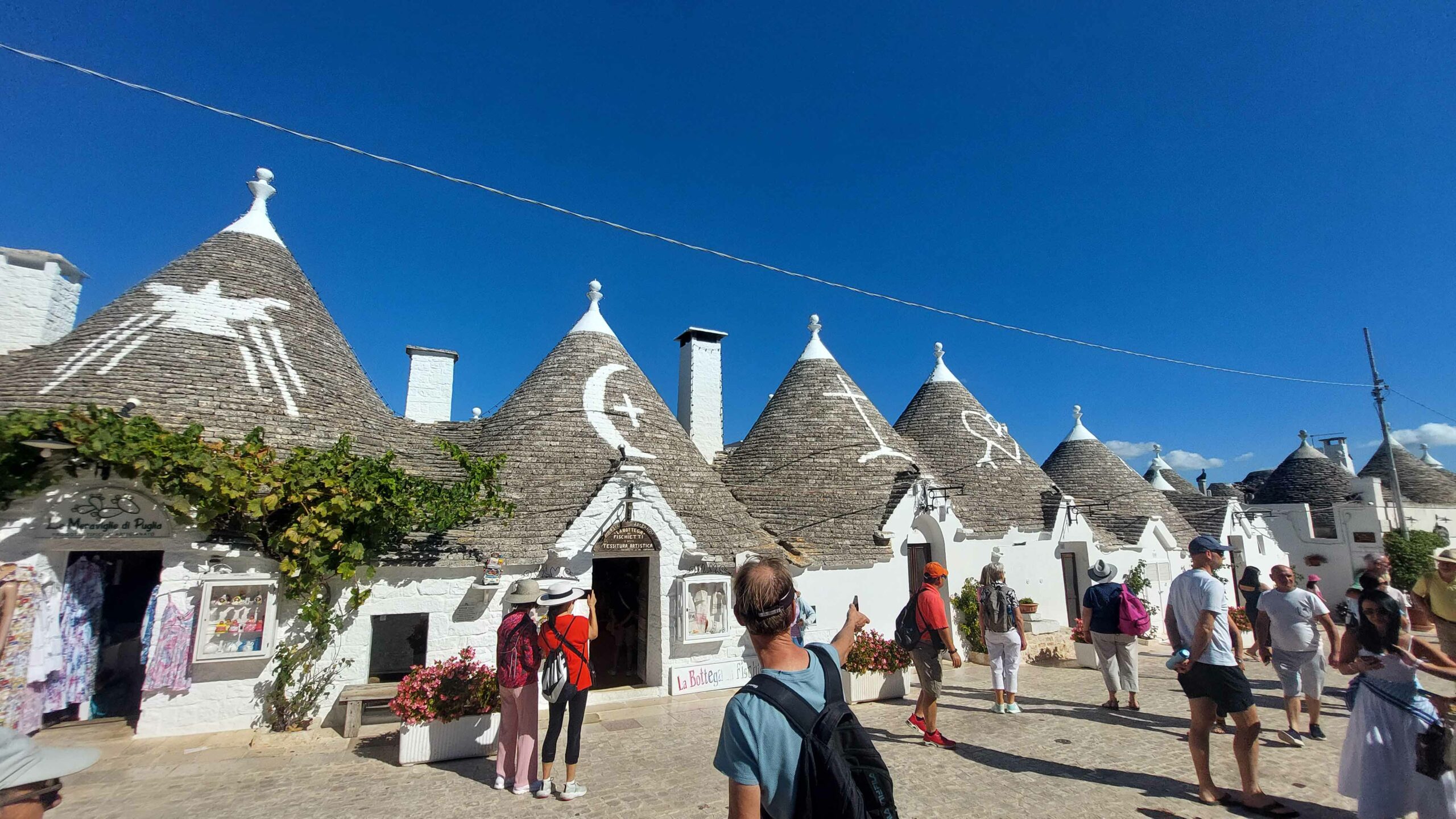 W tym dniu odwiedziliśmy dwa miasta wpisane na Światową Listę UNESCO, choć dziesiątki lat temu nie było im czego zazdrościć. Pierwszym z nich było Alberobello w pobliżu Bari , po którym odbyliśmy godzinny spacer. Cały region wokół słynie z unikatowych form budownictwa – domów typu trulli, które są okrągłe i mają stożkowate dachy z kamienia. Ich powstanie związane było z biedą i chęcią uniknięcia płacenia podatków. Dziś dawne ubóstwo zami