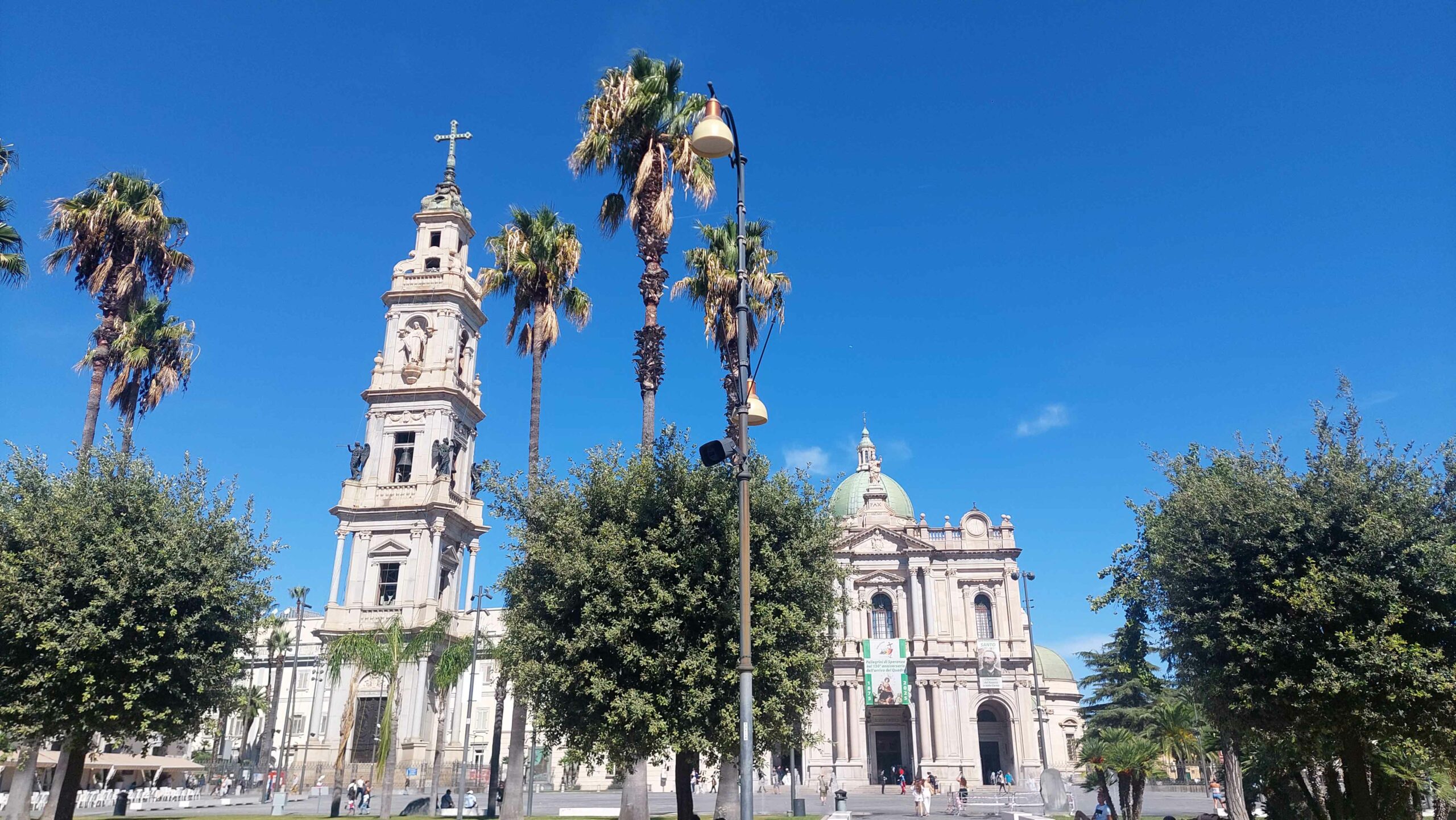 Pielgrzymowanie zaczęliśmy od sanktuarium Matki Bożej Różańcowej, do powstania którego w końcówce XIX wieku przyczynił się bł. Bartolo. W młodości zagubiony duchowo, nawet związany z satanizmem, nawrócił się na chrześcijaństwo pod wpływem przyjaciela. Zaradny i dobrze wykształcony zaangażował w budowę kościoła dla kultu Matki Bożej oraz rozwoju dzieł duchowych i miłosierdzia. To on ukształtował Nowennę pompejańską dla wyjednywania łask przez odnawianie codziennie 15 tajemnic różańca. 27 dni błagając o łaskę, a potem 27 dni dziękując za odpowiedź jaką da Bóg. W tym miejscu nie mogło zabraknąć czasu na prywatną modlitwę, również różańcową. Wcześniej jednak celebrowaliśmy Eucharystię. Bóg przez słowo przypomniał nam o roli życia pojmowanego jako dar i zadanie. Stąd rodzi się wdzięczność za bycie współpracownikami Ojca Niebieskego, za odnalezienie swego powołania oraz prośba o w jego wypełnianiu.