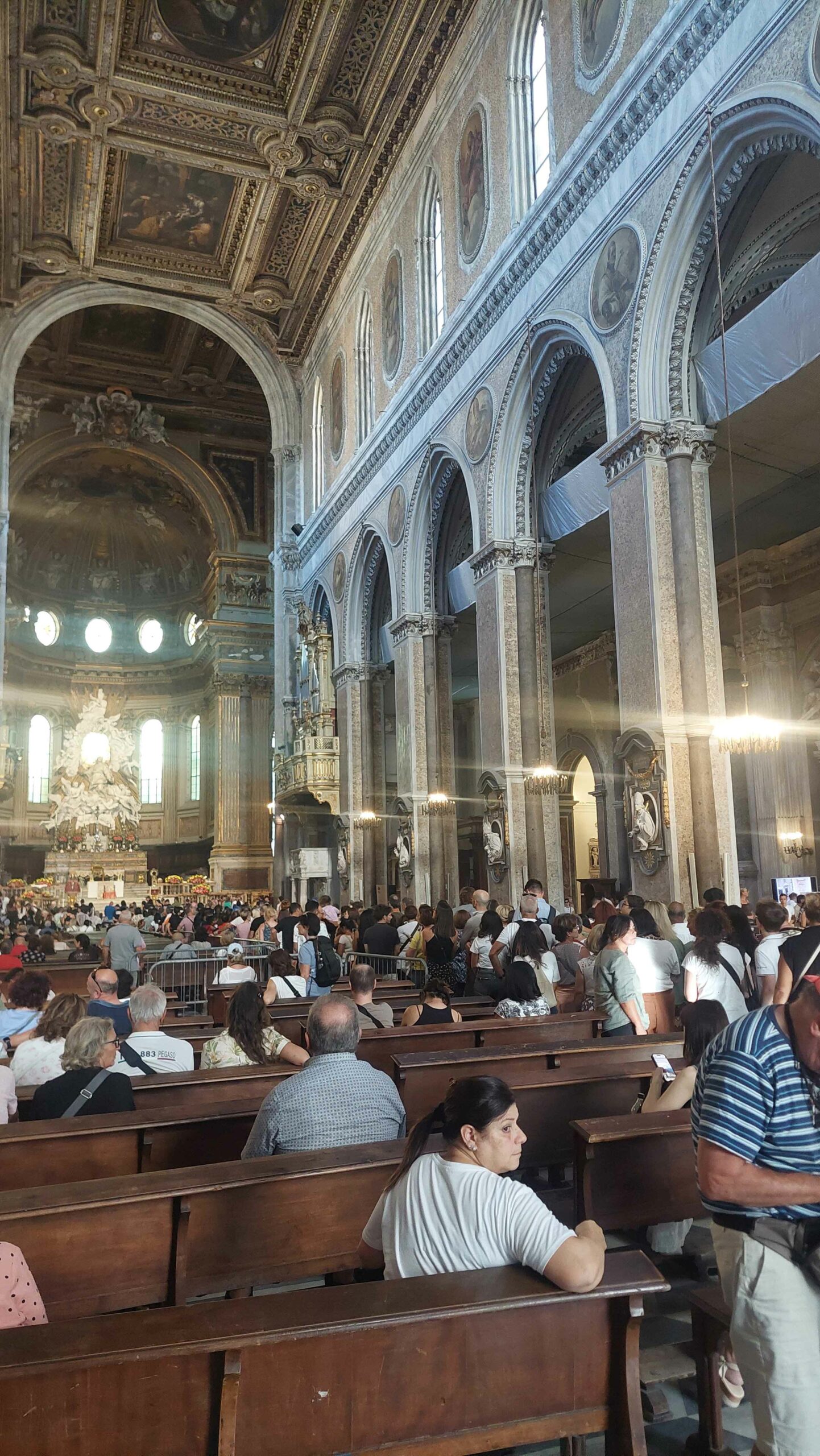 Przejazd do pobliskiego Neapolu zmienił klimat z refleksyjnego spokoju na dynamikę zagonionego życia wielkiej metropolii. Bójne losy tego miasta, umiejscowionego we wspaniałej scenografii przyrody – góry schodzące do morskiej zatoki, zakończonej wyspami – są wołaniem o nadzieję. Znajduje to wyraz w kulcie związanym ze świętym męczennikiem biskupem Januarym. Dziękujemy Bogu, że nasza wizyta w katedrze przypadła na dzień odpustu ku czci patrona Neapolu i dorocznego cudu związanego z upłynnianiem relikwii jego krwi. Każdy taki dzień to nadzieja, że krew w ampułce przejdzie ze stanu stałego w ciekły, zapowiadając błogosławieństwo i pomyślność. To drżenie o przyszłość, ale i wołanie o Boże miłosierdzie.