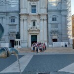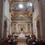 Kościół franciszkanów, w tym maleńkim miasteczku kryje się tkanina z bisioru, na której widnieje oblicze Chrystusa Zmartwychwstałego, nie ręką ludzką uczynione. Przed nim dziękowaliśmy Bogu za to pełne miłości miłosiernej spojrzenie Zbawiciela. On nie patrzy, by nas przyłapać na złu, ale uratować i poprowadzić przez życie. Śpiewając i trwając w ciszy na modlitwie, czuliśmy delikatność tego spojrzenia.