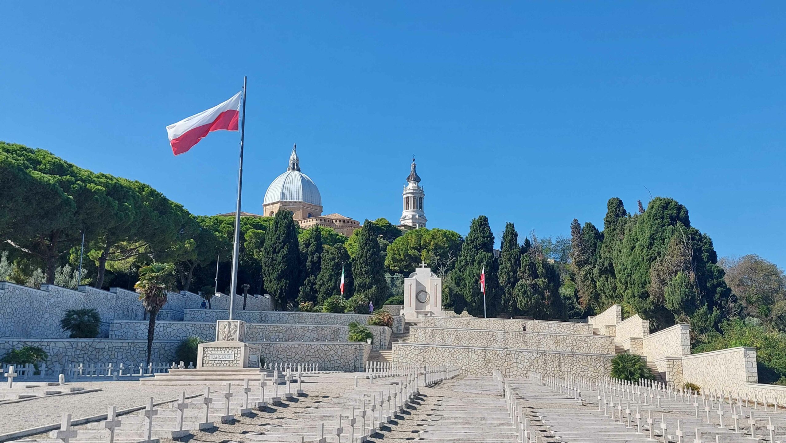 Za bazyliką założony został w roku 1944 cmentarz, na którym spoczęło pod tysiąc polskich żołnierzy z II Korpusu Wojska Polskiego, poległy w trakcie kampanii włoskiej. W tym miejscu modliliśmy o niebo dla poległych za Ojczyznę oraz o pokój w kraju. Na koniec wspólnie odśpiewaliśmy hymn Polski i pojechaliśmy do sanktuarium Świętego Oblicza w Manoppello.