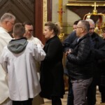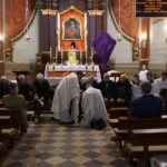 Początkiem paschy, czyli przejścia, jest decyzja, będąca przyzwoleniem na usłużenie nam ze strony Jezusa. On prosi każdego z nas: „Pozwól sobie pomóc”. Wyrazem tej pomocy jest dar Komunii św. oraz gest umycia nam nóg, wyrażający wzięcie na siebie naszych słabości. Ta służbą Zbawiciela jest wołaniem o zaufanie Bogu i przyjęcie planów jakie ma wobec nas. W homilii ks. Michał przypomniał nam o tej postawie Odkupiciela. Wiara w Niego wiąże się z przyjęciem tej pomocy, która zawsze zaskakuje trafnością. Do tego nawiązuje dekoracja w tegorocznej Ciemnicy. Tabernakulum zwieńczone koroną cierniową przypomina o bólu związanym ze służbą wobec nas. Natomiast okalający je łuk cierniowy z mapkami naszych parafialnych wiosek jest swego rodzaju znakiem zapytania: Jesteśmy dla Jezusa koroną chwały, czy bólu? Ten, kto przyjmuje służbę Chrystusa sam zaczyna królować przez służbę.