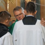 Po zakończonej Mszy Świętej grupy działające w naszej parafii miały okazję złożyć osobiście solenizantowi, najlepsze życzenia imieninowe. „Koncert życzeń” rozpoczęły dzieci, młodzież, ministranci, współpracownicy i przedstawiciele Rady Parafialnej, które w imieniu wspólnoty parafialnej złożyli: Ewelina Kot i Mirosław Kurowski.