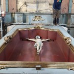 Z końcem maja zdemontowany został ołtarz, który po uzyskaniu dotacji, będzie konserwowany w kilku etapach. W całości powróci do nas najpóźniej w 2024 roku. Wykorzystując odkrycie ścian absydy, dokonamy równocześnie, w dwóch etapach, renowacji ścian i sufitu w prezbiterium. Dlatego mówimy symbolicznie tym wszystkim elementom: „Do zobaczenia w nowej szacie.” Niech oczekiwaniu na efekty pracy konserwatorskiej towarzyszy modlitwa i zaangażowanie finansowe.