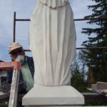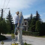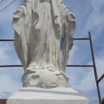 Konserwacji figury podjął się Pan Lucjan Garbacz. Najpierw przez miesiąc czasu oczyszczał ją z przemalowań i uzupełniał braki w piaskowcu, a w ostatnim etapie prac szlifował kamień i zabezpieczał od wpływu warunków atmosferycznych. Wydobyte piękno sprzyjać będzie modlitwie i budowaniu żywej relacji z Bogiem, wspartej orędownictwo ze strony Maryi.