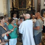 Przejazd z Włoch do Austrii i dalej przez Czechy do Polski wymaga pokonania Alp, co dziś, w porównaniu z dawnymi wiekami, nie nastręcza trudności. Budzi to zarazem wdzięczność wobec budowniczych dróg, wiaduktów, tuneli i całej związanej z nimi infrastruktury. W trakcie podróży zatrzymaliśmy się w sanktuarium Matki Bożej w Maria Saal, gdzie też znajduje się grób św. Modesta, ewangelizatora Karyntii z VIII wieku. Ta wizyta przypomniała nam o potrzebie bycia solą ziemi. Dzieję się to wtedy, gdy najpierw sami pozwalamy się prowadzić Bogu. Tym, co może nam przypominać o tej misji, są nabyte pamiątki. Z każdą z nich wiążemy jakieś wspomnienia lub przesłanie, którym chcemy innych ubogacić. Szczególnymi darami, oprócz tych modlitewnych i duchowych, które jako przedstawiciele parafii przywozimy z tej pielgrzymki, są: relikwie błogosławionego Carlo Acutisa oraz monstrancja z drewna oliwnego w formie tzw. TAU-ki. Ich obecność w przestrzeni naszej świątyni, będzie przypominała naszej rodzinie parafialnej o tej pamiętnej pielgrzymce do sanktuarium św. Małgorzaty w Montefiascone.