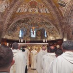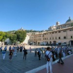 Ten dzień rozpoczęliśmy od wizyty w Porcjunkuli, jednym z kościółków odbudowanych przez św. Franciszka, w odległości 2 km od Asyżu. To przy nim powstały szałasy pierwszych naśladowców Biedaczyny. Tutaj zawiązała się wspólnota franciszkańska i tutaj 3 października 1226 roku zmarł św. Franciszek. W tym miejscu modliliśmy za nas samych, byśmy umieli rozeznać, jak możemy przyczyniać się do odbudowywania Kościoła i podejmowali konkretne działania temu służące.