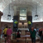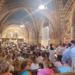 Przejechawszy do Asyżu, udaliśmy się najpierw do bazyliki św. Klary. Znajduje się w nim grób tej świętej oraz ikona krzyża przeniesiona tu z pierwszej siedziby klarysek przy kościółku San Damiano. W chwili osobistej modlitwy adorowaliśmy Chrystusa Ukrzyżowanego i powierzali wstawiennictwu św. Klary. Stała się ona najbliższą współpracowniczką Biedaczyny, zakładając żeńską gałąź zakonu franciszkańskiego. Wraz z nim wołała: „Miłość jest niekochana” i przywracaniu nas Bogu poświęciła swe modlitwy i cierpienie.