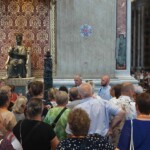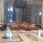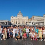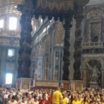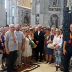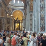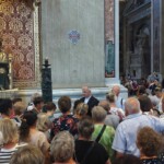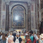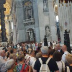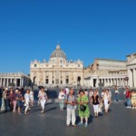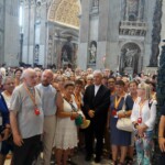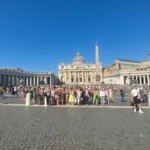 Pożegnawszy się z morskimi klimatami w Santa Severa, udaliśmy się do najmniejszego państwa świata, czyli Watykanu. Oczywiście naszym celem było to, co w nim najcenniejsze ze względu na wiarę, czyli bazylika wzniesiona na grobie św. Piotra, który został ukrzyżowany w pobliskim cyrku Nerona. Po koniecznych zakupach pamiątek, stanęliśmy w kolejce prowadzącej do wnętrza świątyni. Czas spędzony na Placu św. Piotra wykorzystaliśmy na modlitwę różańcową. Po wejściu do wnętrza była możliwość ucieszenia oka oraz zapoznania się z tym przebogatym architektonicznie i dekoracyjnie kościołem. Choć jego majestatyczność może przygniatać, to zarazem wyraża cześć oddawaną Bogu.