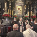 Z tej okazji 42 osoby związane z naszą parafią, udały się w sobotę 4 maja na pielgrzymkę do Częstochowy. Piękna pogoda pozwalała na podziwianie mijanych krajobrazów i budzącej się do życia przyrody. Wykorzystując czas odwiedziliśmy w drodze trzy miejsca. Najpierw zawitaliśmy do kościoła pw. Św. Wojciecha w Książu Wielkim. Bogate i odnowione wnętrze robi niesamowite wrażenie. Jego centrum stanowi ołtarz z obrazem Maryi z XVI w. Następnie zatrzymaliśmy się przed Żarkami przy ruinach kościoła Ducha Świętego, skąd rozpościera się wspaniały widok na dolinę wokół Myszkowa. Wreszcie ostatnim nawiedzanym miejscem było sanktuarium Matki Bożej Patronki Rodzin w Leśniowie. Historia tego miejsca sięgająca XIV wieku i jego obecne funkcjonowanie, pokazuje wielkość Bożych planów i troski o zbawienie każdego z nas.