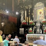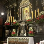 Tak pielgrzymując dotarliśmy na Jasną Górę. Nasze czuwanie rozpoczęliśmy od udziału w Apelu Jasnogórskim, który tradycyjnie 4 maja, w dniu święta patronalnego, prowadzą przedstawiciele Straży Pożarnej. Po nim czuwanie podjęły grupy z naszych dekanatów, a z diecezji kieleckiej przybyło nas łącznie prawie 300 osób. W trakcie tego wieczoru modliliśmy się Litanią Loretańską, rozważaniem części radosnej różańca oraz odprawili Drogę Światła. Oprócz wspólnotowej był też czas na indywidualną modlitwę w ciszy. Całość zwieńczyła, sprawowana o północy Eucharystia. Usłyszane w niej słowo Boże przypomniało o miłości Boga do nas, wyrażonej również w osobie Maryi i jej troski o nas. Patrząc na siebie, czy bliźnich wciąż trzeba nam pamiętać, że każdy jest przez Nich kochany. Ostatnim akcentem nocnego czuwania była modlitwa Koronka do Bożego Miłosierdzia, po której nastąpiło zasłonięcie Jasnogórskiego Obrazu Czarnej Madonny.