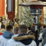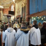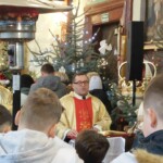 Rozpoczynały się one od bicia w dzwony, śpiewu „Gdy się Chrystus rodzi” i procesji do szopki. W ten sposób chcieliśmy oznajmić wszystkim parafianom tę radosną nowinę, że nadszedł czas łaski oraz wskazać na jego źródło – Jezusa Chrystusa. Wzięty ze żłóbka ewangeliarz i odczytany fragment o powołaniu św. Mateusza, przypomniały, że Bóg chce w Roku Świętym wylewać na nas Swe miłosierdzie. To jest źródło nadziei dla nas i całego świata. Dlatego w procesji do ołtarza szliśmy za niesionym wysoko ewangeliarzem, przypominając sobie o Boskim Przewodniku w tej pielgrzymce nadziei. Bez wsłuchiwania się w słowo Boże i poddania mu swego życia, nie będzie owoców zbawienia. Adorujący nas Bóg, pragnie naszego uświęcenia, a także uleczenia ran. Patrząc na Niego powtarzajmy w tym świętym czasie akt nadziei: „Ufam Tobie, boś Ty wierny, Wszechmogący i miłosierny. Dasz mi grzechów odpuszczenie, łaskę i wieczne zbawienie”. Zdroje łask są nam otworzone, więc czerpmy z nich obficie.