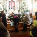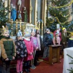 Włączając się w tę piękną tradycję, zorganizowaliśmy i w naszej świątyni, w sobotę 6 stycznia, wieczór kolęd. Po Eucharystii zgromadzeni wysłuchali najpierw programu przygotowanego przez dzieci i młodzież pod dyrekcją pana Grzegorza Krawczuka, naszego organisty. Różnorodność repertuaru i aranżacji zrobiła spore wrażenie na słuchaczach, którzy nie szczędzili braw i sami włączyli się w śpiew przy dwóch kolędach. Kolejnymi grupami, które ubogaciły zebranych śpiewem kolęd i pastorałek, były: Członkinie Koła Gospodyń z Plechowa z towarzyszącym i trio muzycznym, Członkinie Koła Gospodyń z mieszkańcami z Chruszczyny Wielkiej oraz mieszkańcy Kaczkowic. Każda z tych grup wykonała po dwa utwory. Równocześnie do popisów wokalnych i muzycznych odbył się konkurs na najpiękniejsze korony przy gotowane przez ponad 20 dzieci. Całość wieczoru zakończył konkurs „Zgadnij jaka to kolęda?” i wspólne wykonanie „Wśród nocnej ciszy” przez wszystkich zebranych.