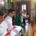 Wśród posług podejmowanych w liturgii ważne miejsce przypada liturgicznej służby ołtarza, do której zalicza się m.in. ministrantów i lektorów. W minioną niedzielę sześciu spośród naszych posługujących przy ołtarzu – Bartosz Cichy, Kacper Kot, Albert Kurowski, Bartosz Kurowski, Gabriel Maj i Miłosz Nawrot – przyjęło alby, będące uroczystym strojem używanym w liturgii. Szata ta podkreśla rangę osoby w gronie asysty kapłana. Równocześnie jest wezwaniem do większej gorliwości i odpowiedzialności za sprawowane święte misteria naszej wiary. Patrząc na nich wierni powinni czerpać wzór w przeżywaniu liturgii. Ufamy, że ten zewnętrzny znak będzie zachętą dla nich i pozostałych ministrantów do gorliwego podejmowania powierzonej im posługi.