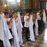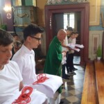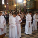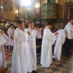 Wśród posług podejmowanych w liturgii ważne miejsce przypada liturgicznej służby ołtarza, do której zalicza się m.in. ministrantów i lektorów. W minioną niedzielę sześciu spośród naszych posługujących przy ołtarzu – Bartosz Cichy, Kacper Kot, Albert Kurowski, Bartosz Kurowski, Gabriel Maj i Miłosz Nawrot – przyjęło alby, będące uroczystym strojem używanym w liturgii. Szata ta podkreśla rangę osoby w gronie asysty kapłana. Równocześnie jest wezwaniem do większej gorliwości i odpowiedzialności za sprawowane święte misteria naszej wiary. Patrząc na nich wierni powinni czerpać wzór w przeżywaniu liturgii. Ufamy, że ten zewnętrzny znak będzie zachętą dla nich i pozostałych ministrantów do gorliwego podejmowania powierzonej im posługi.