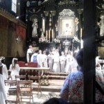 W tym roku dzieci z naszej parafii, wraz z rodzicami i towarzyszącymi osobami, udały się na Jasną Górę przed oblicze Czarnej Madonny. Osiemdziesięcioosobowa grupa pod przewodnictwem Księdza Proboszcza, w środę 7 czerwca, wyruszyła do Częstochowy, gdzie wspólnie odprawiła Drogę krzyżową na Wałach, weszła na wieżę oraz zwiedziła muzea i skarbiec. Centrum pielgrzymowania była Eucharystia. Dzieci ubrane w stroje komunijne, weszły procesyjnie do kaplicy Cudownego obrazu, gdzie o godz. 14.30 sprawowana była w kameralnym gronie Najświętsza Ofiara. Możliwość tak bliskiego wpatrywania się w oblicze Maryi było dodatkowym przeżyciem, które dopełnia owoce tego czasu. W powrotnej drodze pielgrzymi „zdobyli” zamek w Olsztynie, czego efekty w postaci ruin można podziwiać.