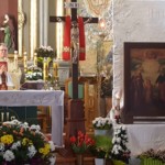 Peregrynująca po diecezji kopia obrazu św. Józefa – Opiekuna Rodziny, zawitała do naszej parafii w sobotę 8 maja. Przywitanie nastąpiło na placu kościelnym, gdzie obraz przynieśli państwo Barbara i Piotr Dąbrowscy, którzy jako delegaci dekanatu odebrali go w Kielcach z rąk bpa Jana Piotrowskiego. Po wprowadzeniu do świątyni nastąpił obrzęd powitania, którego dokonali ks. Proboszcz oraz przedstawiciele parafian: Mirosław Kurowski i Justyna Góra. Podczas Eucharystii sprawowanej w intencji owoców peregrynacji, Bóg w swoim słowie przypomniał nam o potrzebie zaufania Mu. Przykładem tego jest św. Józef, który uczy nas słuchania Ojca niebieskiego i pełnienia Jego woli. To z tej postawy, a nie z zadufania w sobie, rodzi się owocne życie. Każdy z nas może mieć problem z rozeznaniem planów Bożych, lecz trwając na modlitwie odnajdzie właściwe rozwiązanie. Uroczystość powitania obrazu św. Józefa zakończyła się czuwaniem modlitewnym, podczas którego księża z przedstawicielami świeckich zawierzyli Opiekunowi Świętej Rodziny czas peregrynacji i rodziny naszej parafii. Dopełnieniem powitania była adoracja podjęta w niedzielę po każdej mszy św. Dzięki niej mogliśmy liczniej wejść w duchową i modlitewną więź ze św. Józefem, goszczącym u nas.