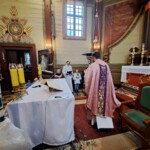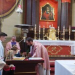 Tą ostatnią naukę rekolekcyjną zaczął ks. Bogdan o pokazania siódmego łańcucha, jakim jest bezbożne myślenie o śmierci. Można wiec z niej kpić lub panicznie się jej bać. Obie jednak postawy nie uchronią nas od zmierzenia się z nią. A wobec jej nieuchronności jest nadzieja, bo jest życie wieczne. Śmierć jest nie jest finałem, lecz bramą, przez którą przeprowadza nas Bóg do nieba. Właśnie w celu wypracowania właściwego myślenia o śmierci powołane zostało przed 100 laty Apostolstwo Dobrej Śmierci. Ma ono trzy cele: