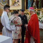 Dziękując Księdzu Biskupowi za przewodniczenie tej ważnej dla nas liturgii, członkowie Rady Parafialnej wręczyli mu ikonę św. Małgorzaty napisaną na karmieniu oraz wykonaną z piernika replikę naszego kościoła.