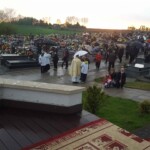Wybór miejsca był nieprzypadkowy. Przecież to przy grobach i na każdej mszy świętej stajemy, dzięki tajemnicy „świętych obcowania”, we wspólnocie rodzinnej pielgrzymujących na ziemi i żyjących w wieczności. Dlatego rodziny gromadziły się przy grobach swych bliskich i tam uczestniczyły w liturgii. Siąpiący deszczyk nie odstraszył zgromadzonych, a przypomniał o atmosferze mszy z Janem Pawłem II sprawowanej przed 30. laty na lotnisku w Masłowie. To wtedy Ojciec święty, nawiązując do IV przykazania, wygłosił homilię o rodzinie, która odbiła się szerokim echem w Polsce i na świecie. Dziś jeszcze silniej doświadczamy ataków na rodzinę, dlatego na zakończenie Eucharystii Ksiądz Proboszcz dokonał aktu zawierzenia naszej parafii św. Józefowi, a przedstawiciele kobiet i mężczyzn oddali pod Jego opiekę nasze rodziny. Całość spotkania zakończyło indywidualne błogosławieństwo każdej przybyłej rodziny.