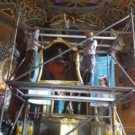 Dopiero na tak przygotowanym obrazie uzupełniono ubytki w farbie i położono warstwę zabezpieczającą, wydobywając pierwotny blask. Całość zamocowana została na desce i zespolona z ramą. Efekty tej żmudnej pracy, odpowiednio podświetlone, rozświetliły wnętrze naszej świątyni, stanowiąc kolejny etap jej całkowitej odnowy. Śledząc proces konserwacji warto pomyśleć o tym, co równocześnie robimy dla duchowej odnowy naszego życia i wspólnoty parafialnej.