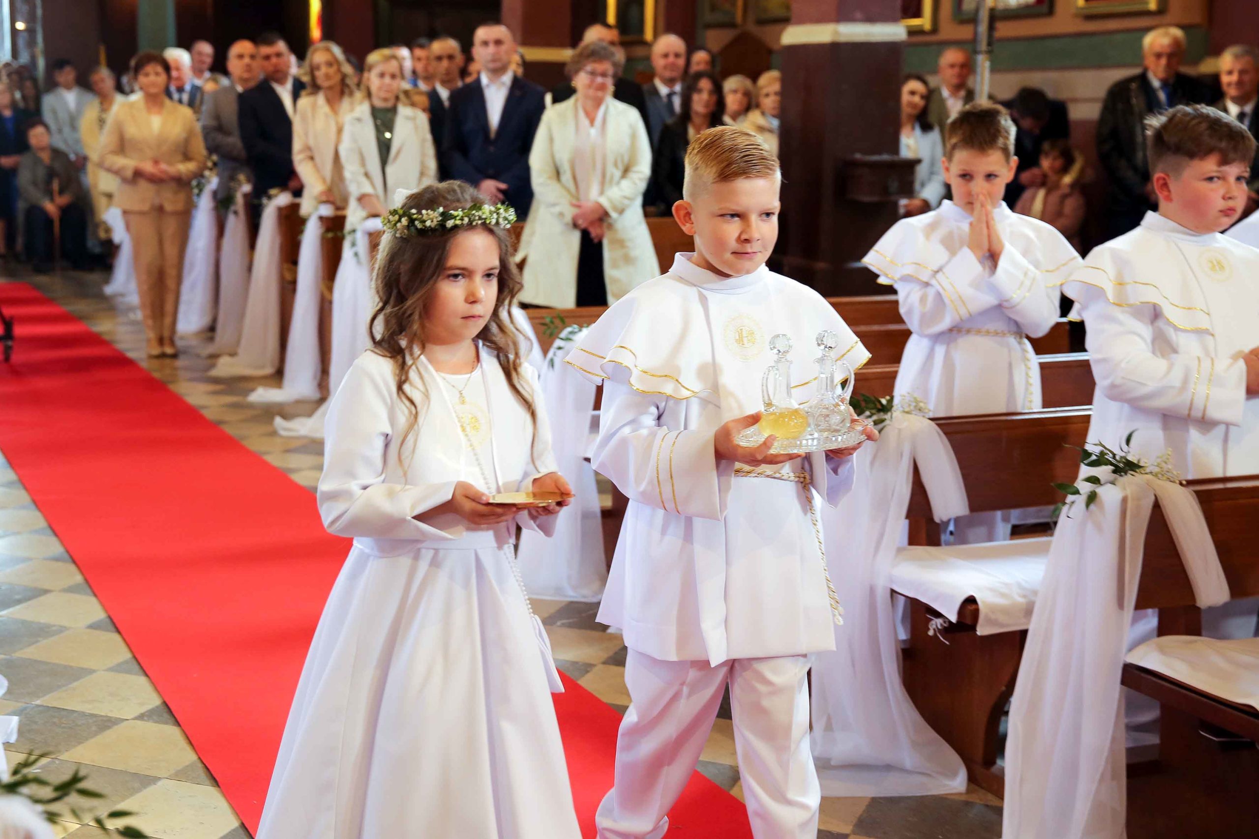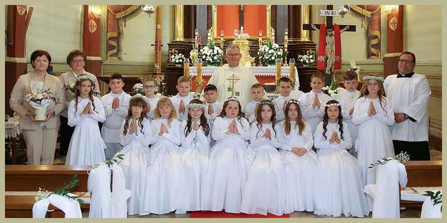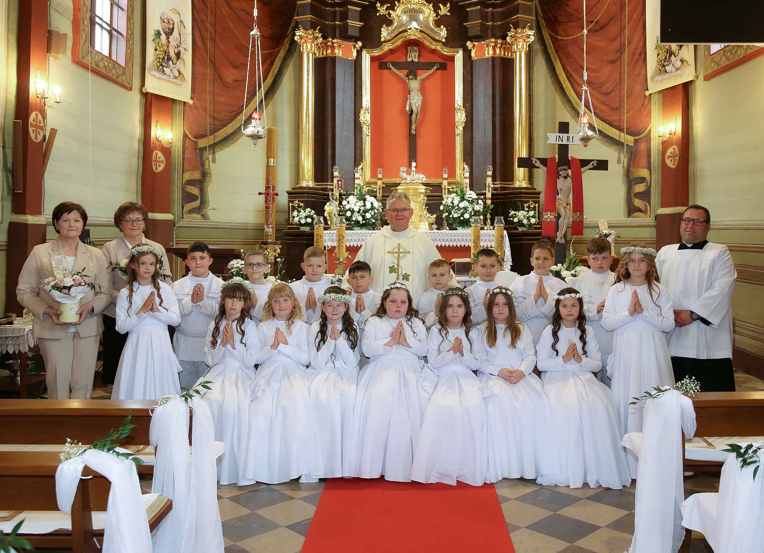 W sobotę 17 mają, siedemnaścioro dzieci z klas trzecich przystąpiło do I Komunii świętej. To zjednoczenie z Chrystusem Eucharystycznym kolejnego rocznika młodych wiernych jest zawsze świętem nie tylko dla nich osobiście i ich bliskich, ale również dla całej wspólnoty parafialnej.