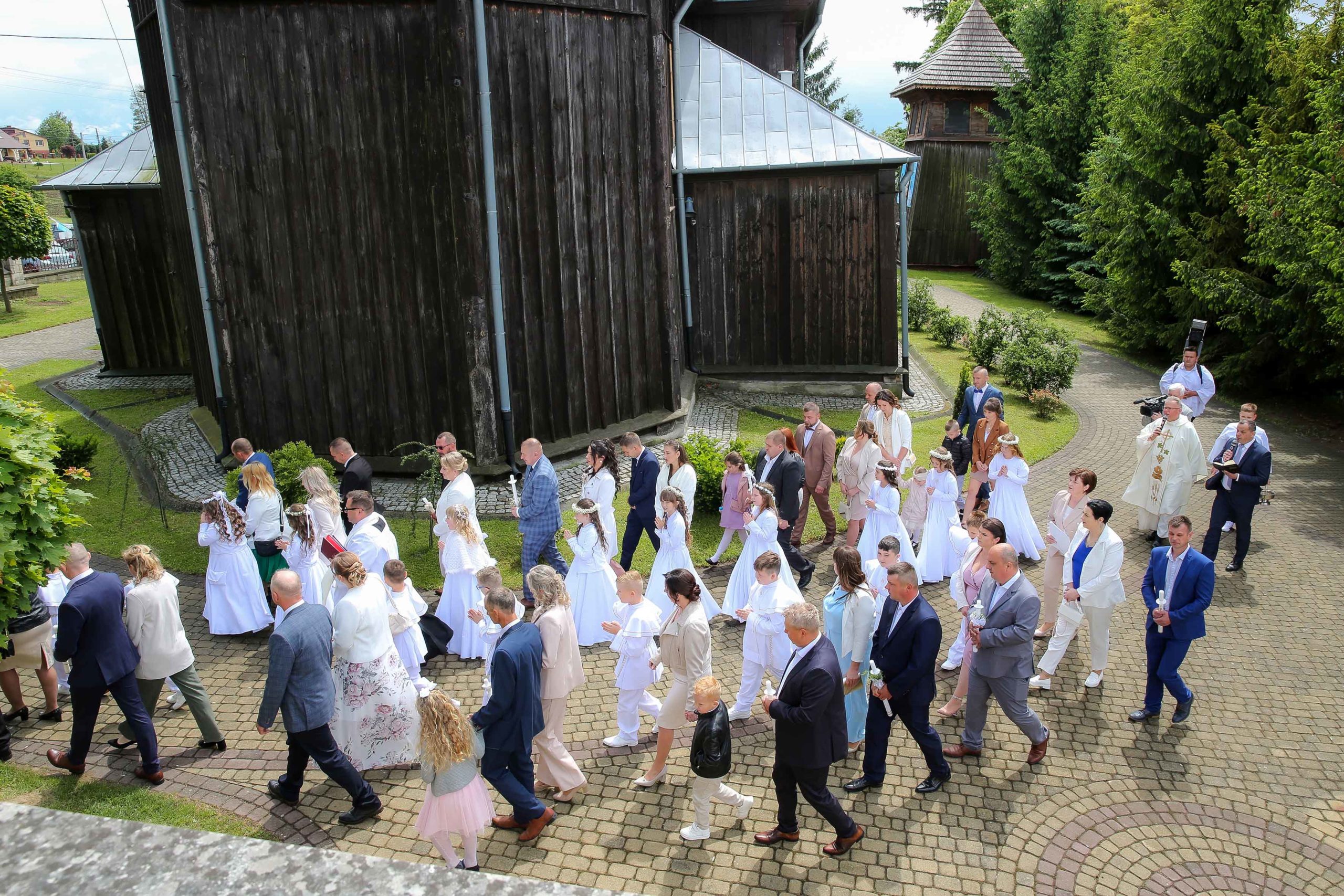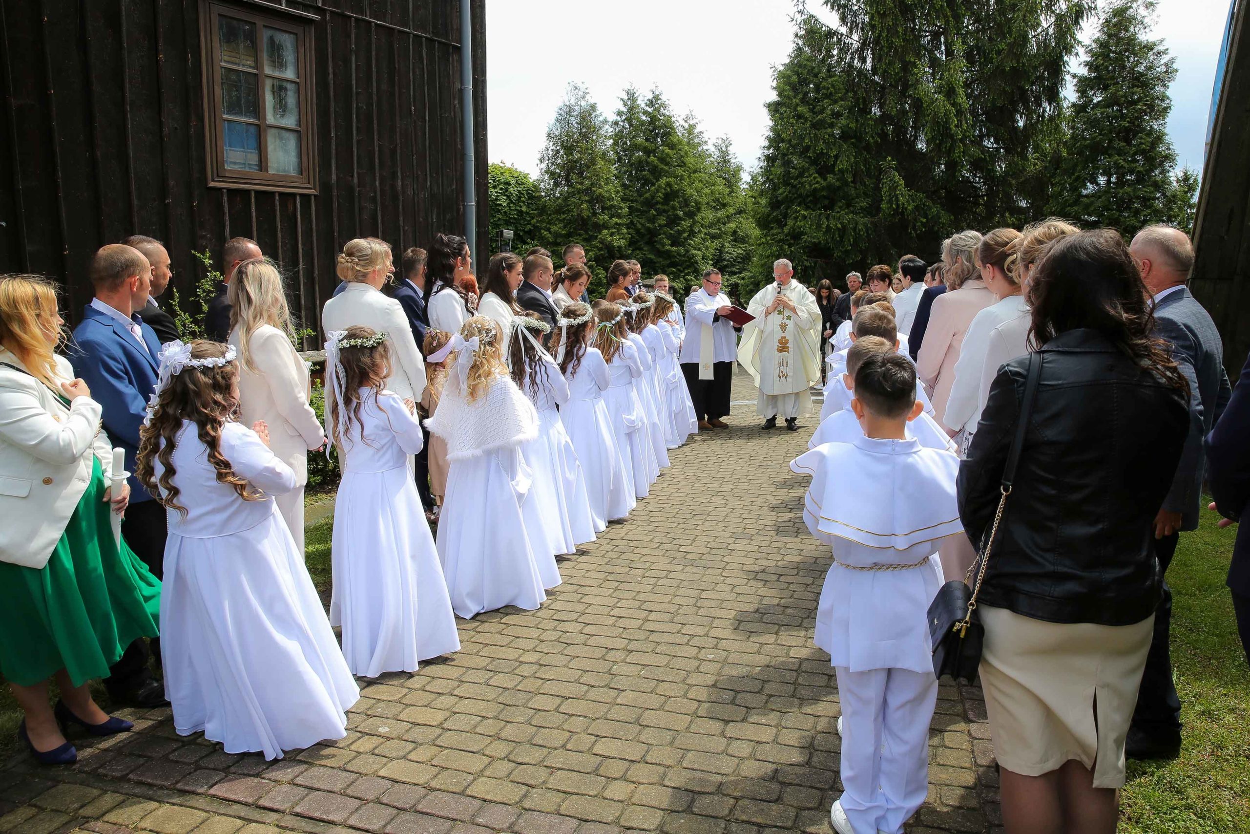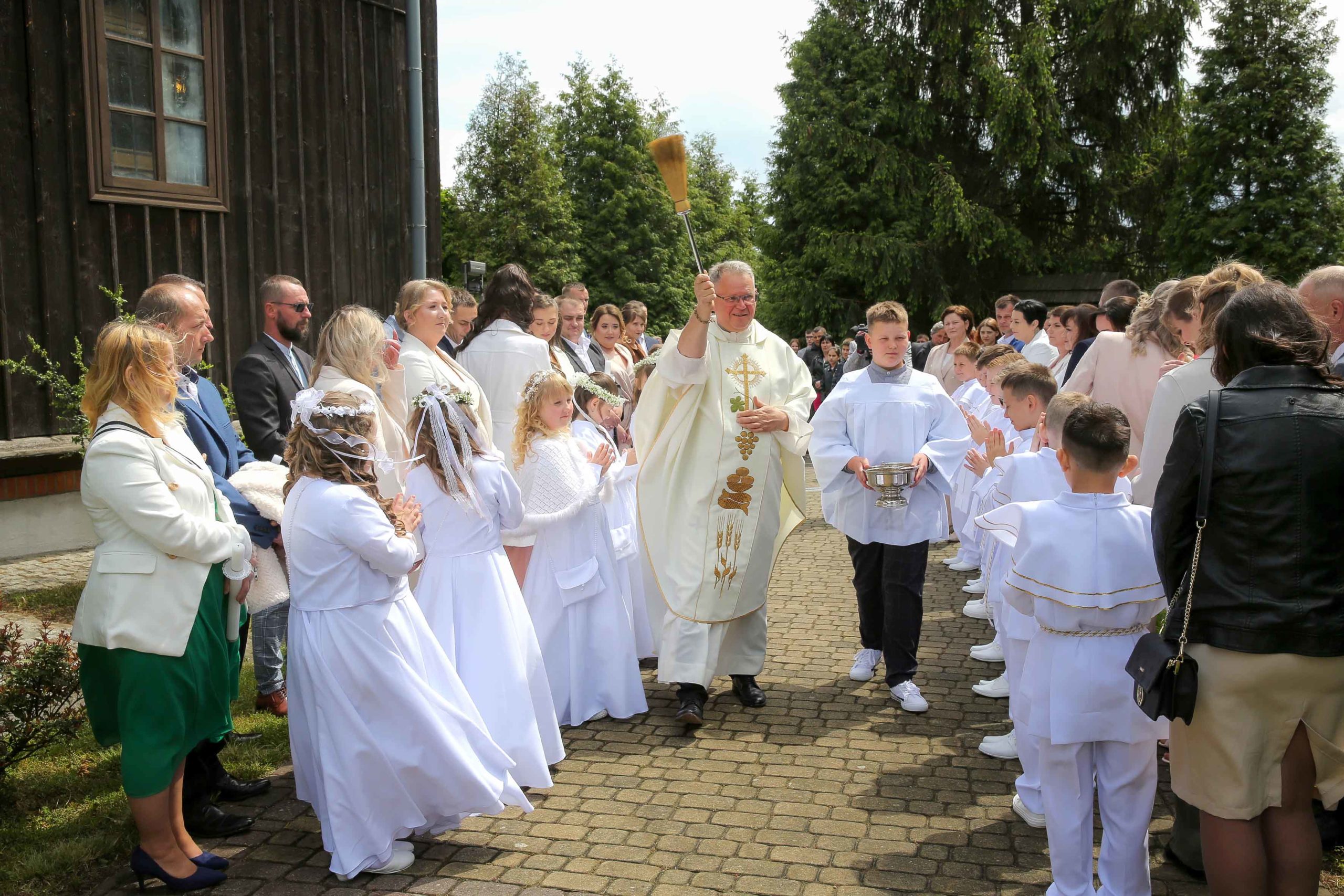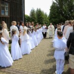Piękna oprawa przygotowana przez Panią Danusię i Księdza Michała, z oprawą muzyczną w wykonaniu Pana Grzegorza pomogła wszystkim w doświadczeniu wyjątkowości I Komunii Świętej. A Pan Bóg też dołoży do daru Swego Syna, dar pogody, w postaci okienka ze słońcem w ogólnie pochmurny i deszczowy dzień.