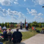 Spotkanie na cmentarzu zakończyło się okolicznościowymi przemówieniami, złożeniem kwiatów i zapaleniem zniczy. Wojewoda Zbigniew Koniusz docenił dbałość o pamięć historyczną w przestrzeni cmentarnej oraz w kształtowaniu młodego pokolenia przez Kościół i szkołę w oparciu o wzorce, do których niewątpliwie należy mjr Hubal. Starosta Jan Nowak nawiązał do aktualnej sytuacji geopolitycznej i potrzeby akcentowania cech widocznych w bohaterskiej postawie mjra Dobrzańskiego. Zaś wiceburmistrz Łukasz Maderak nawiązał do szkolnego procesu wychowania, dającego szansę na poznawanie małej Ojczyzny i utrwalanie tradycji. Jako ostatni głos zabrał wnuk bohatera Henryk Sobierajski, który przybył na uroczystość z żoną Katarzyną. Wyraził przekonanie, że odsłonięty pomnik trafnie wyraża historię oddziału jego dziadka, zamkniętą między pożegnaniem z córką Krystyną, a śmiercią pod Anielinem. Po odśpiewaniu Hymnu Polski, zebrani przeszli do kościoła na Eucharystię, której przewodniczył ks. Henryk Kowaliński, a homilię wygłosił kapelan wojewódzki WP ks. mjr Krzysztof Ziobro.