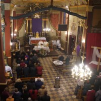 Liturgia Wielkiego Czwartku zakończyła się przeniesieniem Najświętszego Sakramentu do Ołtarza Wystawienia, czyli Ciemnicy. W tym roku jej tematyka nawiązywała do motywu serca Jezusowego, które bije dla nas, rozlewając miłość. Syn Boży scharmonizował rytm Swego serca z naszym. A od nas zależy, czy przezpelny udział w Eucharystii zjednoczymy się z Nim. Symboliczny wyrys elektrokardiogramu z napisem „Kocham Cię, Was” oraz datami stuleci istnienia naszej parafii jest pytaniem o naszą miłość i o czerpanie z mądrości przodków.