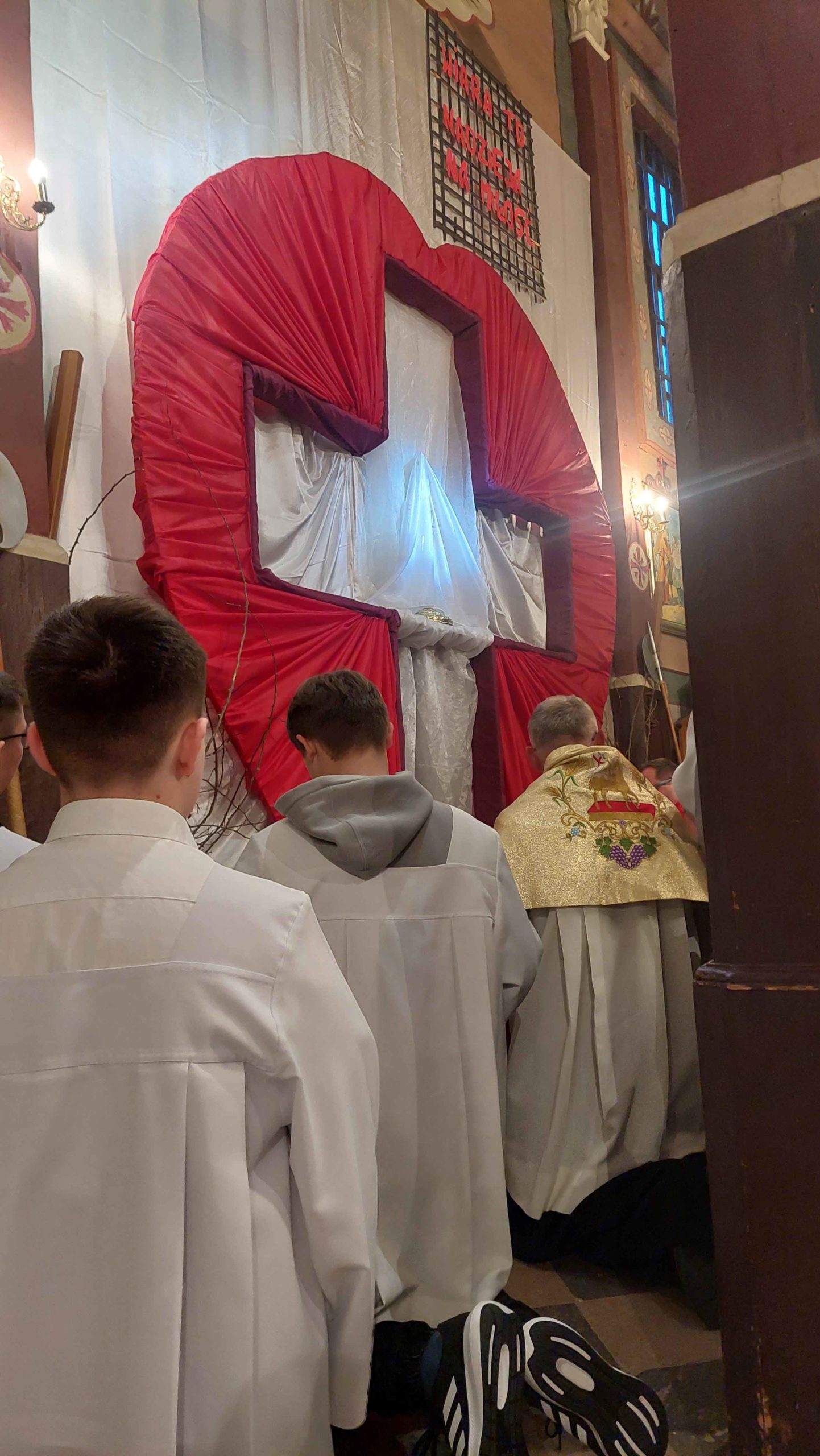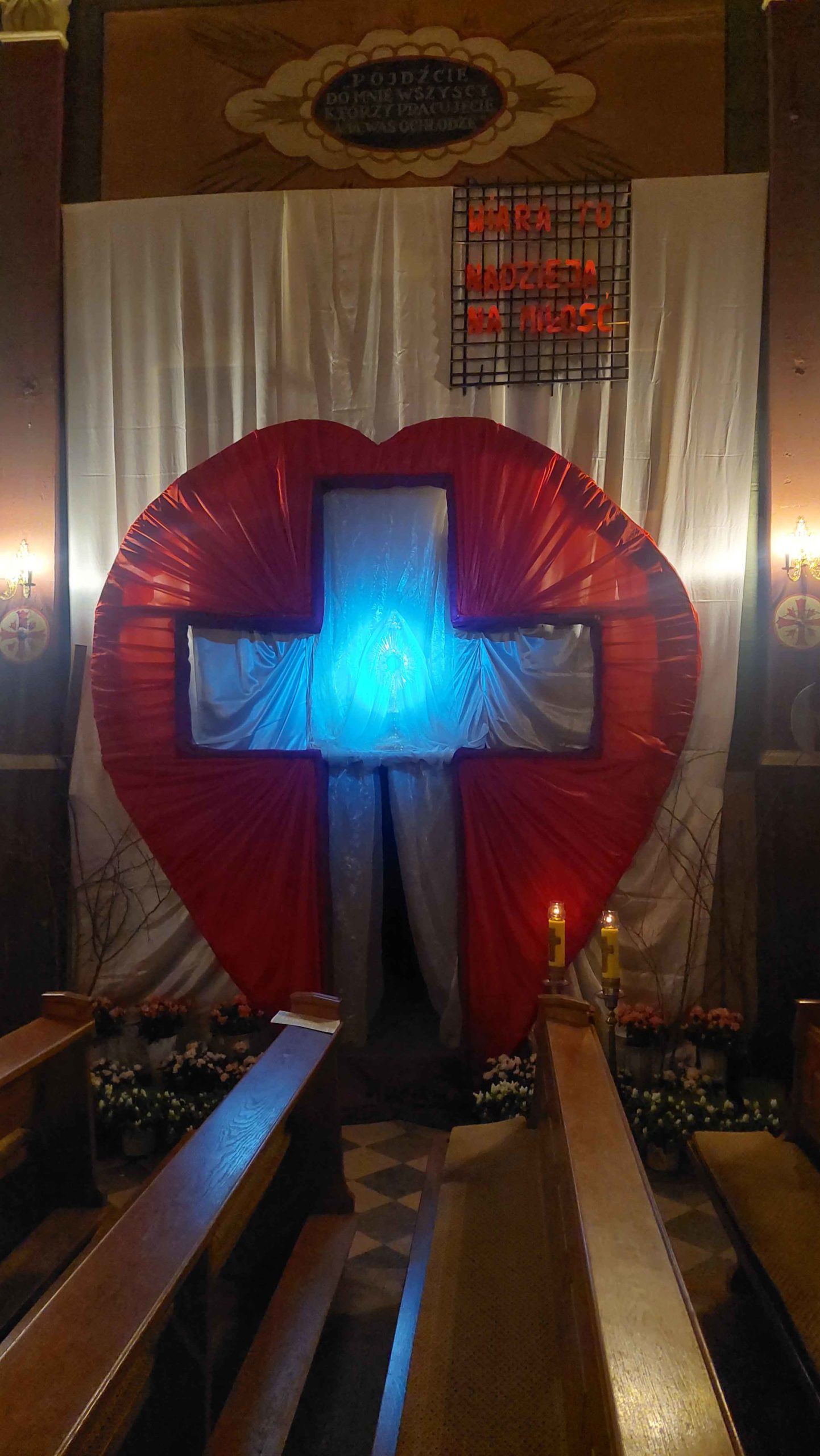 Ten dzień, przeżywany bez sprawowanej Eucharystii, kieruje nasz wzrok na tajemnicę zbawczej Męki Jezusa Chrystusa oraz Krzyża, jako znaku miłości i nadziei. Pogłębieniu tego służą: Nabożeństwo Drogi krzyżowej, Liturgia Męki Pańskiej oraz podejmowana adoracja.