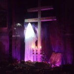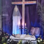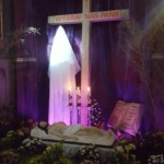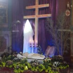 Do Zbawcy obecnego przy nas nawiązuje dekoracja „grobu Pańskiego”. Ustawiony w nim krzyż, przypomina o tradycji ustawiania tzw. krzyży morowych, będących znakiem zaufania Bogu w czasie zarazy, ale i dziękczynieniem za ochronę przed nią. Pusty krzyż wskazywał na zwycięskiego Jezusa i zachęcał do powierzenia się Mu. O tym mówią teksty z symbolicznej księgi obok. Oprzyj się na krzyżu.