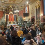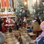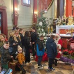 Stało się to możliwe dzięki inicjatywie ks. Michała, który zabiegał o to spotkanie i doprowadził je do skutku. W wypełnionej po brzegi świątyni znaleźli się rodzice z prawie setką dzieci oczekujących na spotkanie ze św. Mikołajem po mszy o godz. 10. Przybył zgodnie z planem, witany śpiewem, prowadzonym przez Dzieci Boże. Po powitaniu, dzieci podchodziły do niego, by otrzymać paczki. Wiele z nich przygotowało piosenki, czy wierszyki, czym ucieszyły naszego gościa. Radosna atmosfera udzieliła się też dorosłym. Ufamy, że to nie ostatnia wizyta św. Mikołaja u nas.
