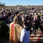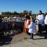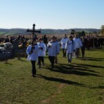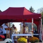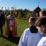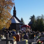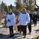 Jak zwykle w tym dniu sumę odprawialiśmy na ołtarzu polowym na cmentarzu. Poprzedziła ją procesja przez cmentarz z modlitwą za zmarłych przy pięciu stacjach. Choć w naszej rodzimej tradycji jest to dzień nawiedzania grobów bliskich, jednak liturgia kieruje nas ku społeczności świętych, którzy idąc ścieżkami Bożych błogosławieństw, osiągnęli już chwałę nieba. O tym aspekcie naszej zadumy przypomniał nam w homilii Ksiądz Michał. Podkreślił wagę troski o świętość leżących tu zmarłych, czyli również o realną pomoc ofiarowaną im, gdy przebywają w czyśćcu. Wskazał również na świętych, których relikwie posiadamy, jako na wzory i pomocników w tej misji. Wciąż musimy odnawiać w sobie pragnienie, by zaduma dokonywana nad grobami nie przygnębiała nas a inspirowała w życiu.