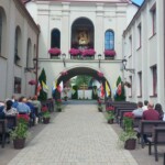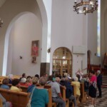 Pierwszym nawiedzanym miejscem było sanktuarium Matki Bożej Ostrobramskiej w Skarżysku-Kamiennej. Powołał je do istnienia w roku 1988 ówczesny biskup radomski Edward Materski. Pochodził on z Wilna, skąd przez Warszawę dotarł do Kielc. Tu przyjął święcenia kapłańskie w roku 1947 i sakrę biskupią w roku 1968. Położył wielkie zasługi w dziedzinie rozwoju katechetyki. W 1981 roku został biskupem sandomiersko-radomskim, a od roku 1992 biskupem radomskim. Zmarł w 2012 roku. Nasze nawiedzenie tego miejsca zbiegło się z uroczystością Jubileuszu 20. lecia koronacji tutejszego obrazu. Mszy przewodniczył Nuncjusz Apostolski w Polsce abp Antonio Filipazzi. Pięknie przygotowana liturgia, z homilią Arcybiskupa Antonia oraz możliwość modlitwy w kaplicy ostrobramskiej odcisnęły ślad łaski w naszych sercach.