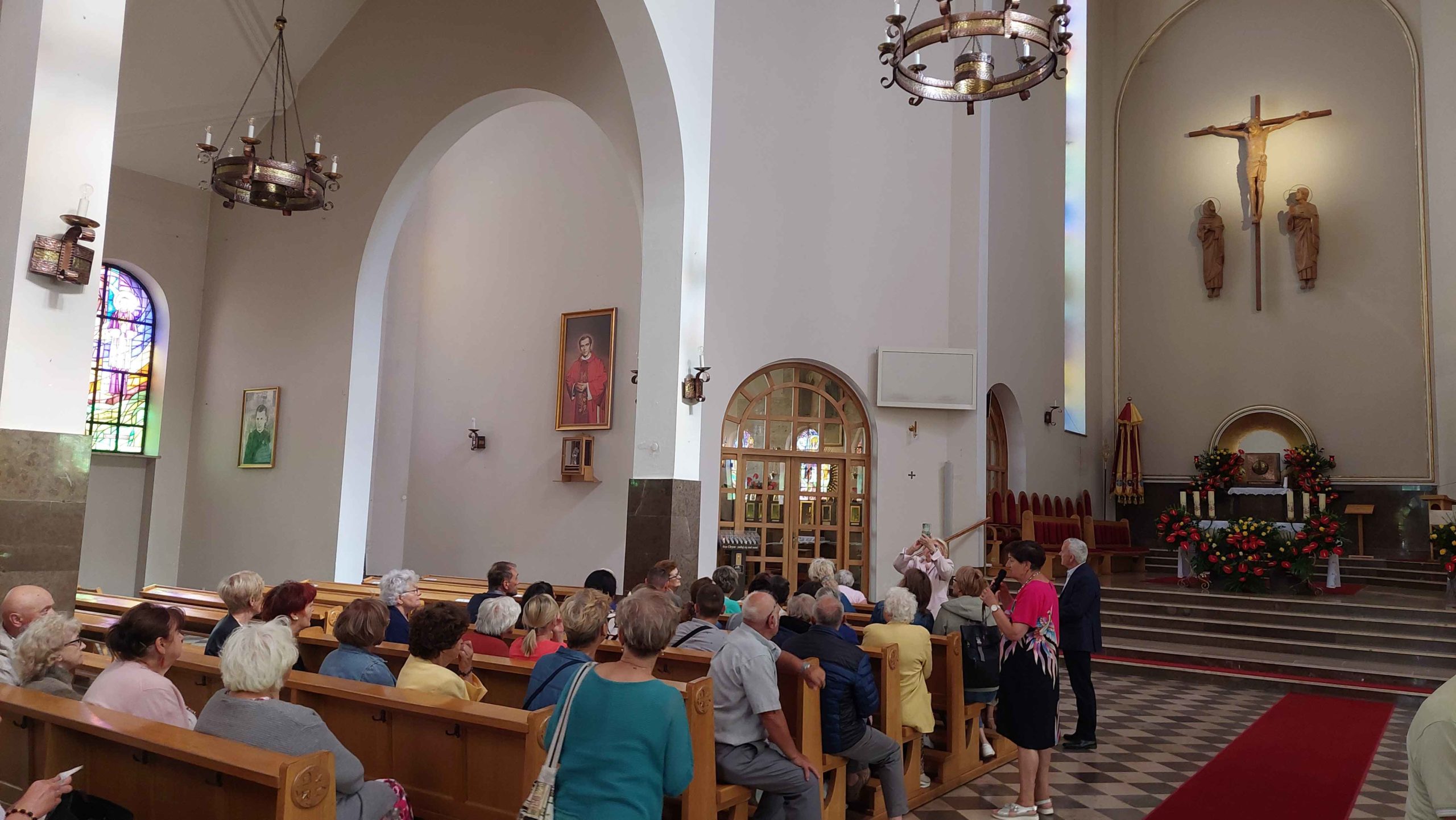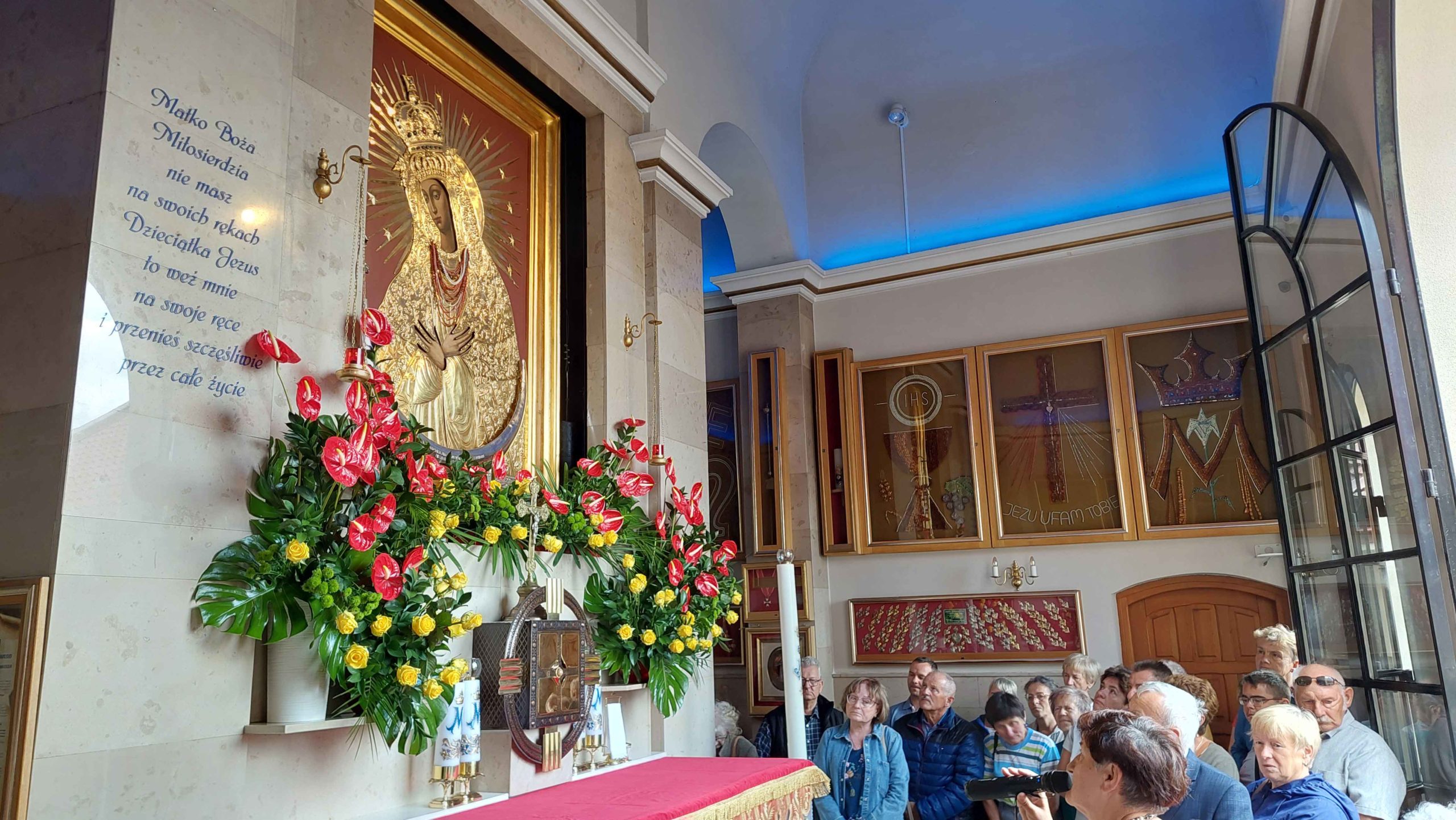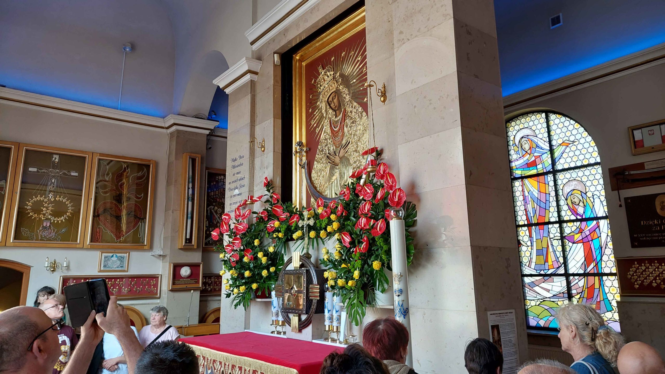 Pierwszym nawiedzanym miejscem było sanktuarium Matki Bożej Ostrobramskiej w Skarżysku-Kamiennej. Powołał je do istnienia w roku 1988 ówczesny biskup radomski Edward Materski. Pochodził on z Wilna, skąd przez Warszawę dotarł do Kielc. Tu przyjął święcenia kapłańskie w roku 1947 i sakrę biskupią w roku 1968. Położył wielkie zasługi w dziedzinie rozwoju katechetyki. W 1981 roku został biskupem sandomiersko-radomskim, a od roku 1992 biskupem radomskim. Zmarł w 2012 roku. Nasze nawiedzenie tego miejsca zbiegło się z uroczystością Jubileuszu 20. lecia koronacji tutejszego obrazu. Mszy przewodniczył Nuncjusz Apostolski w Polsce abp Antonio Filipazzi. Pięknie przygotowana liturgia, z homilią Arcybiskupa Antonia oraz możliwość modlitwy w kaplicy ostrobramskiej odcisnęły ślad łaski w naszych sercach.
