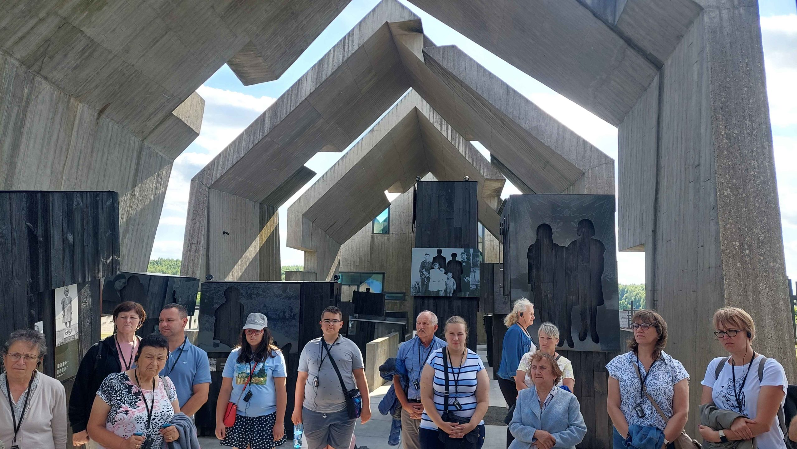 Po smacznym obiedzie przejechaliśmy do Muzeum Martyrologii Wsi Polskiej w pobliskim Michniowie. Umieszczone w stylizacji nawiązującej do niszczonych przez hitlerowców tutejszych stodół, sprzyja refleksji nad dramatycznymi losami mieszkańców polskich wsi podczas II Wojny Światowej. Miejsce powstania tego muzeum nie jest przypadkowe. 12 i 13 lipca 1943 Niemcy dokonali pacyfikacji tej wsi, mordując 204 mieszkańców, w większości przez spalenie. Ocalało 28 osób wywiezionych na roboty do Rzeszy. Wieś została zrównana z ziemią. Po wojnie ocaleni próbowali ocalić pamięć o pomordowanych i stąd idea muzeum, które upamiętnia hekatombę przeszło 800 polskich wsi, doświadczonych pacyfikacjami. Uświadomienie sobie ogromu cierpień, pobudza do odpowiedzialności za pokój na świecie i ochronę każdego ludzkiego życia.